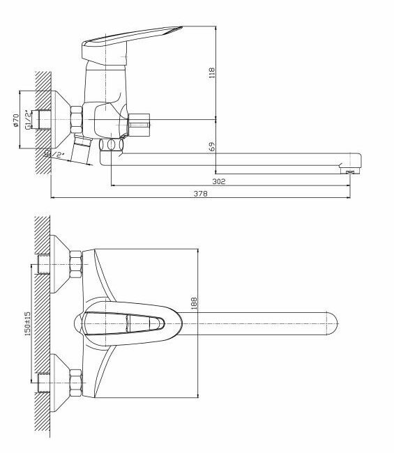 Смеситель для ванны Haiba HB2207, хром (хром / глянцевая)
