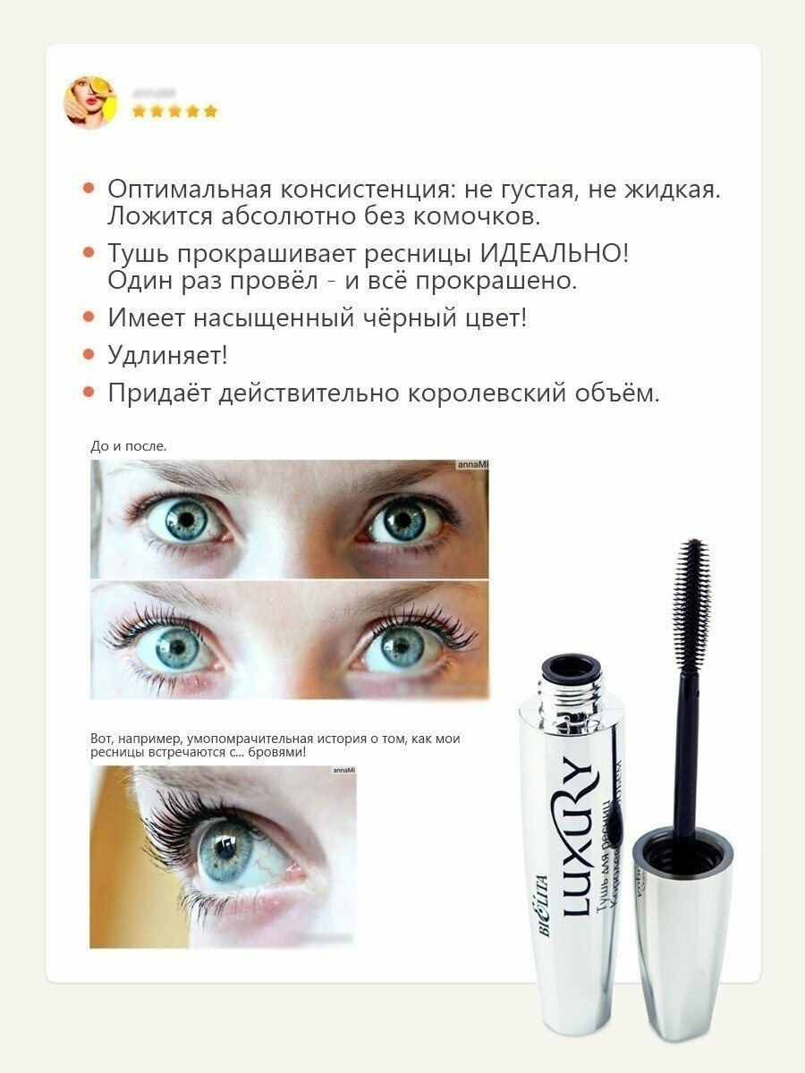 | Плюсы: | Хорошо удлиняет и разделяет реснички |