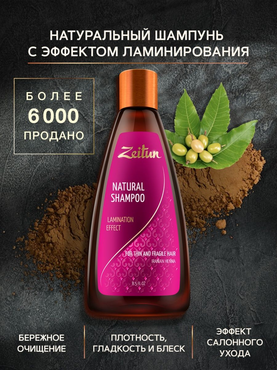 Шампунь для волос Zeitun Эффект ламинирования, для тонких волос с иранской хной, 250 мл .