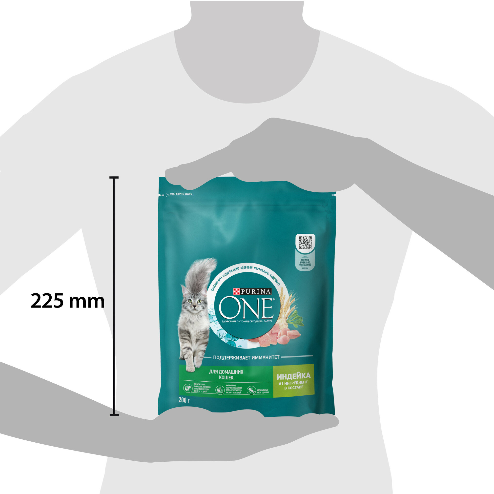 Сухой корм Purina ONE для взрослых кошек, живущих в домашних условиях, с высоким содержанием индейки и цельными злаками, 200 г