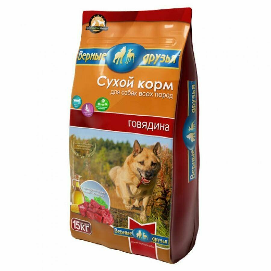 Сухой корм Верные друзья для собак всех пород, говядина, 15кг
