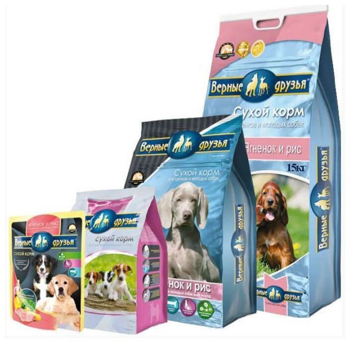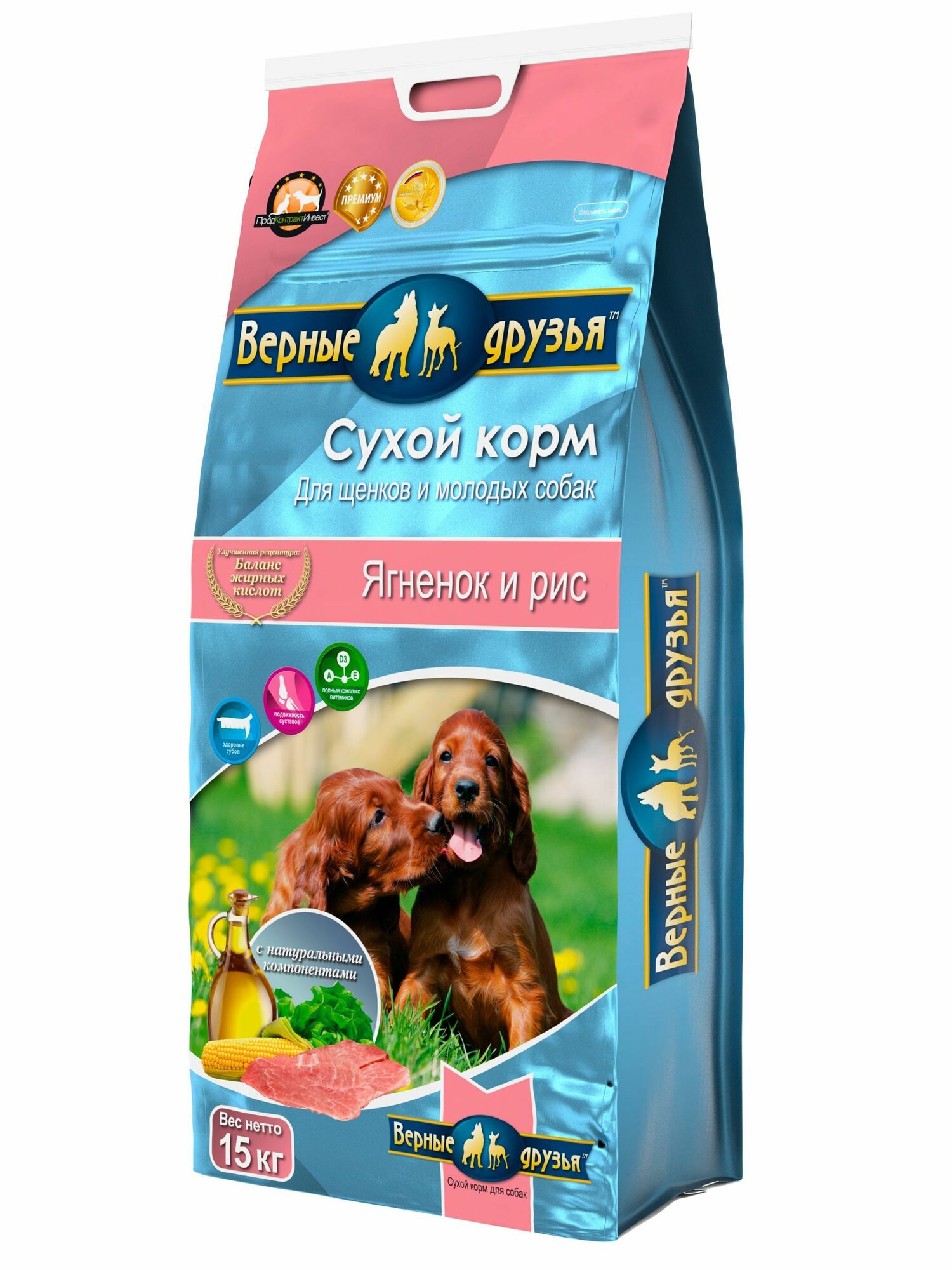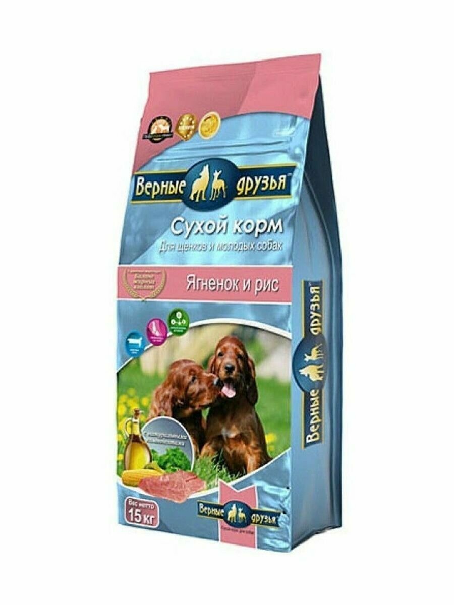 Корм Верные друзья сухой для щенков и молодых собак ягнёнок И РИС 15кг