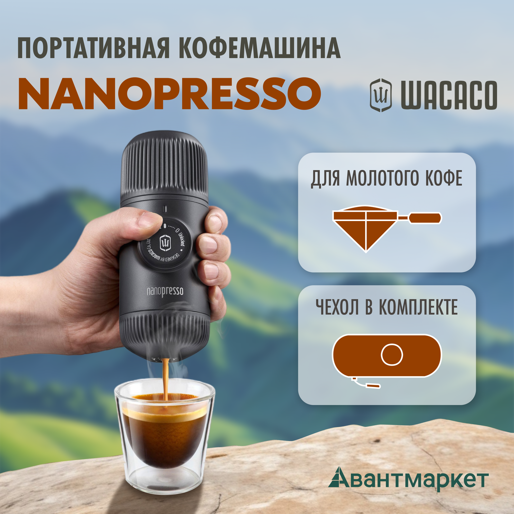 Ручная портативная кофемашина WACACO Nanopresso+чехол