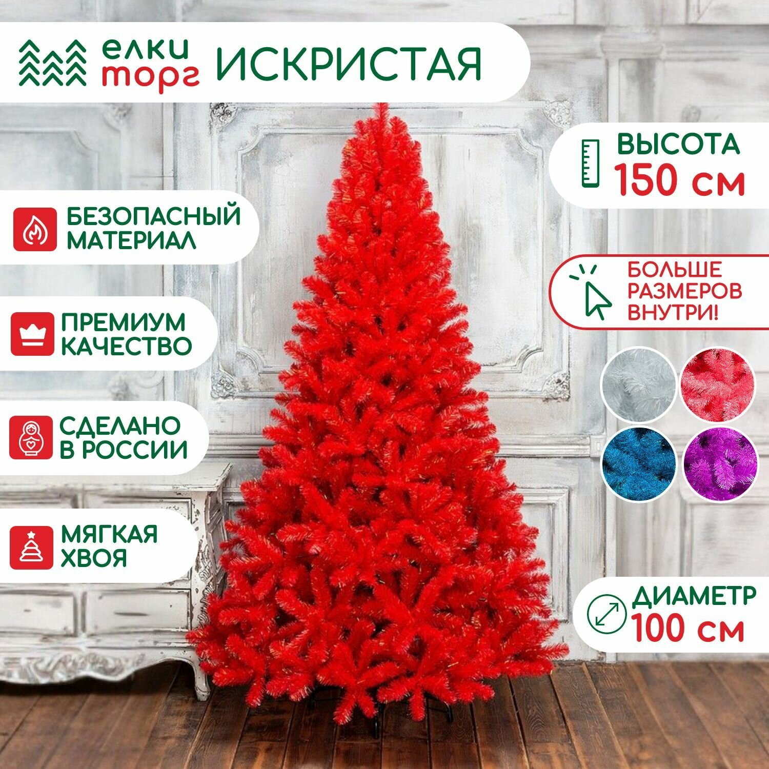 СохранитьИскусственная елка Искристая 150 см., красная, мягкая хвоя, ЕлкиТорг (152150) интересное: