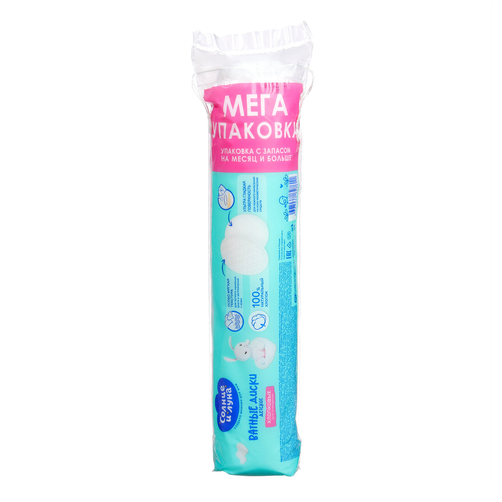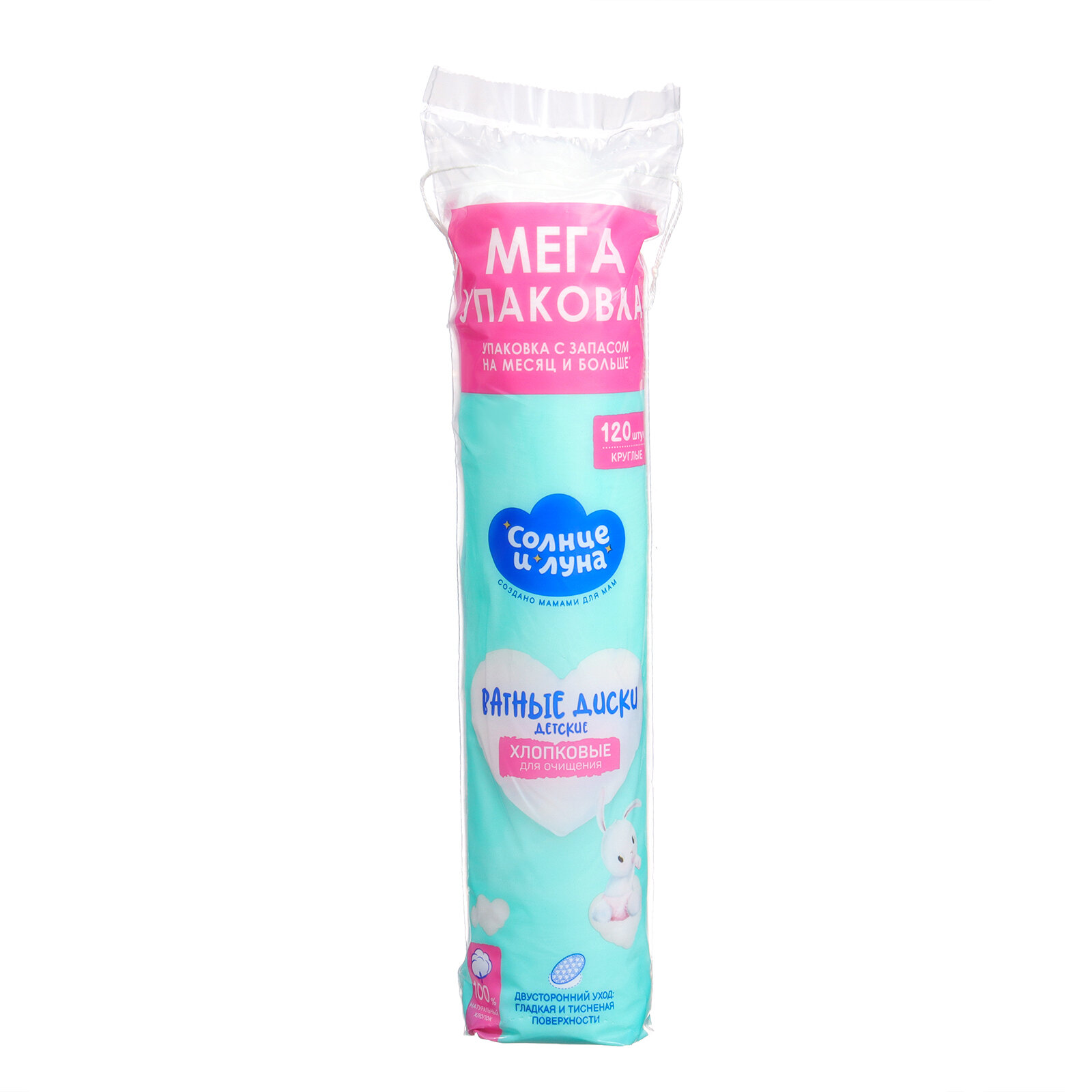Ватные диски Солнце и Луна для детей двусторонние (круглые), 120 шт., пакет