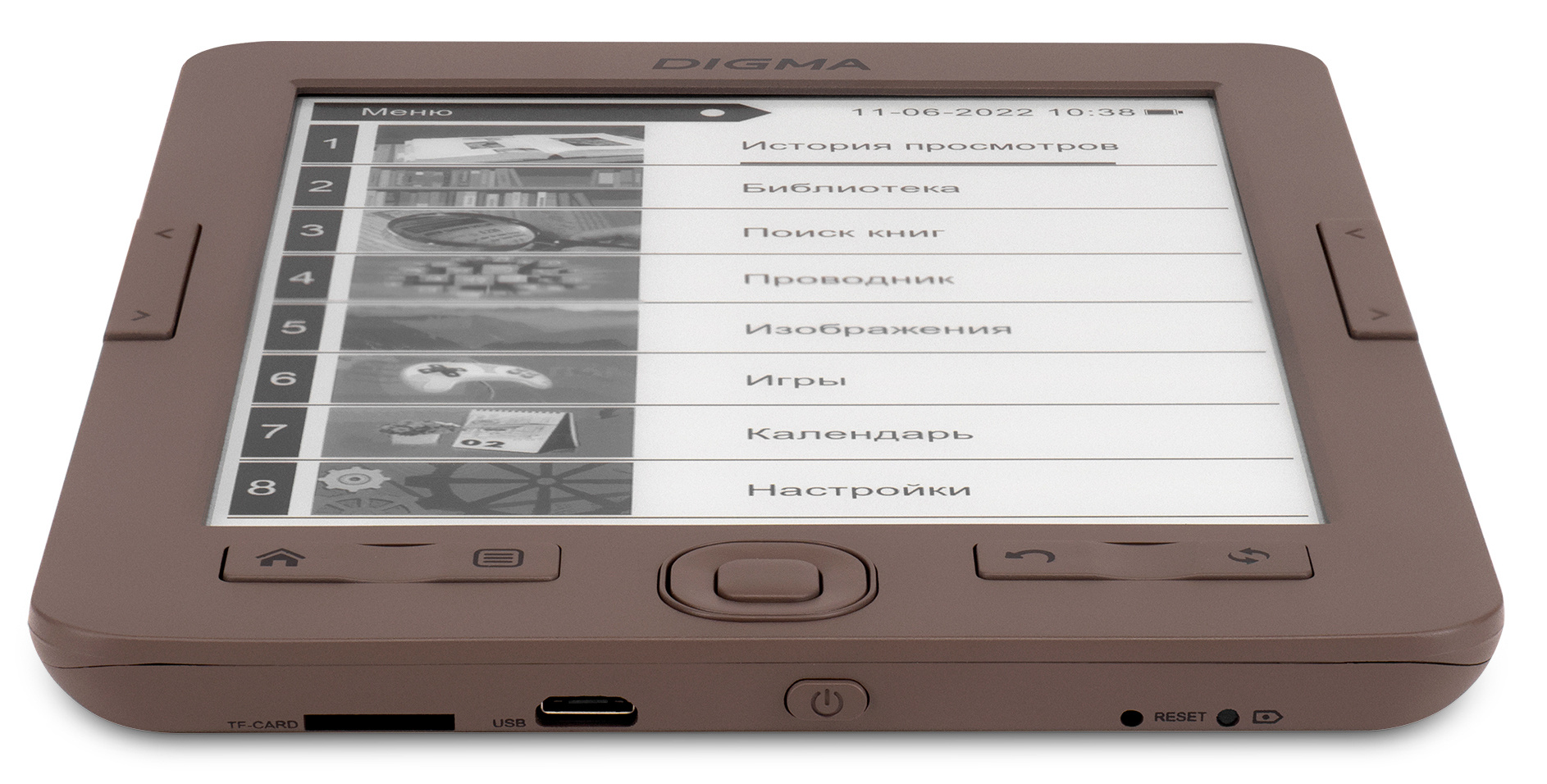 Сохранить6" Электронная книга DIGMA e60C 1024x758, E-Ink, 4 ГБ, комплектация: стандартная, коричневый интересное: