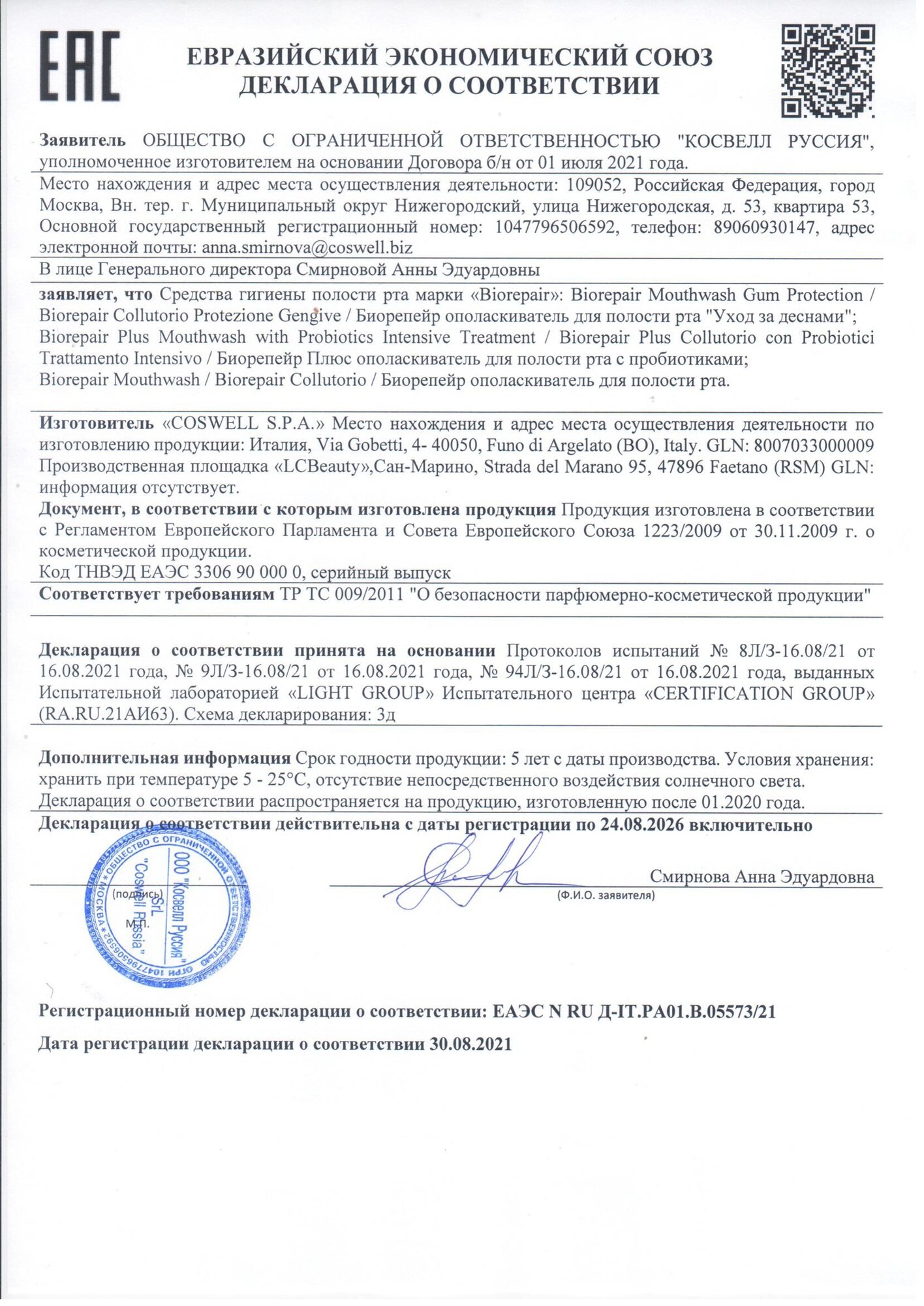 | Отзыв: | Классная штука для тех кого заботит здоровье и восстановление зубной эмали. Стоматологии используют в своём быту только продукцию Coswell |