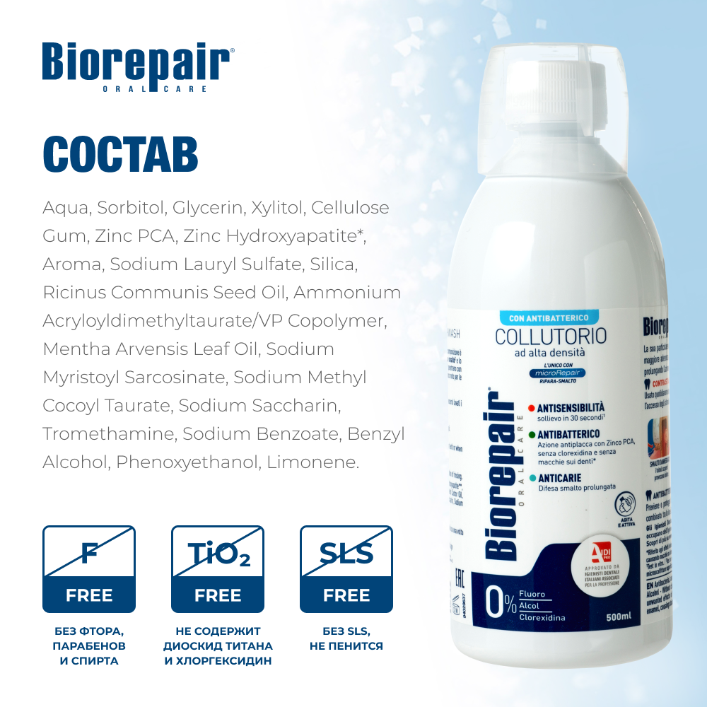 Biorepair Ополаскиватель для полости рта Антибактериальный 3 в 1, 500 мл, Biorepair
