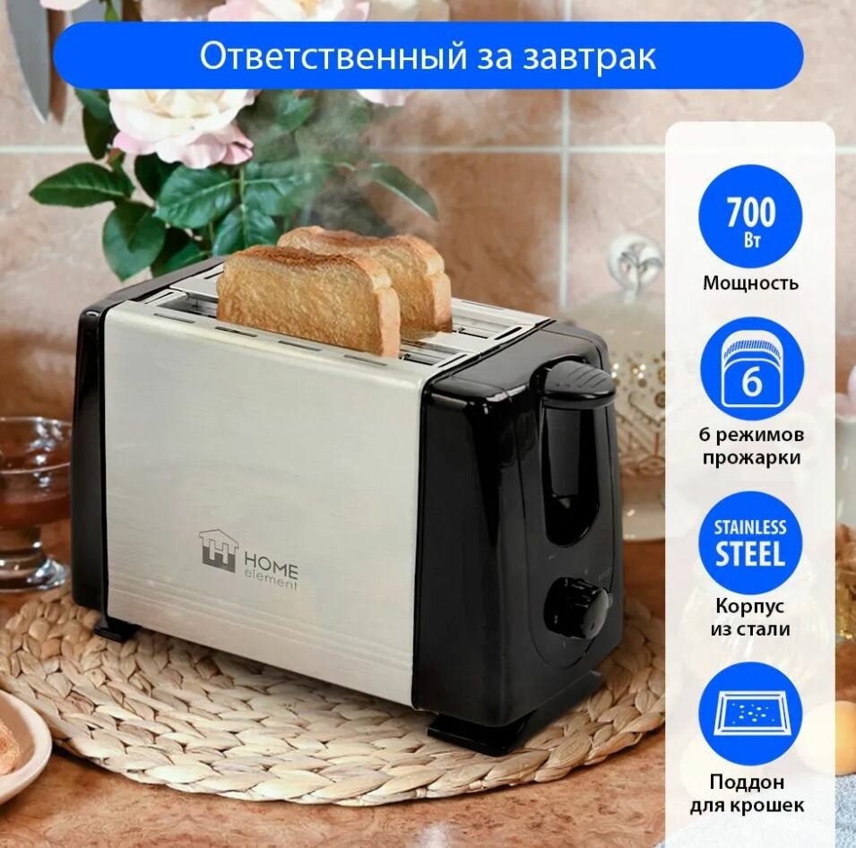 СохранитьHOME ELEMENT HE-TS500 черный жемчуг тостер интересное: