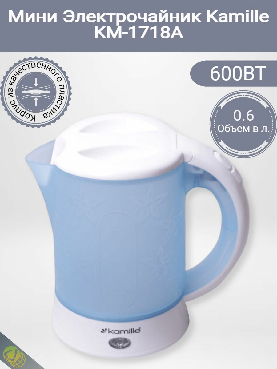Купить Чайник 0,6 л. электрический пластиковый Kamille KM-1718B белый-голубой c чашками и ложками