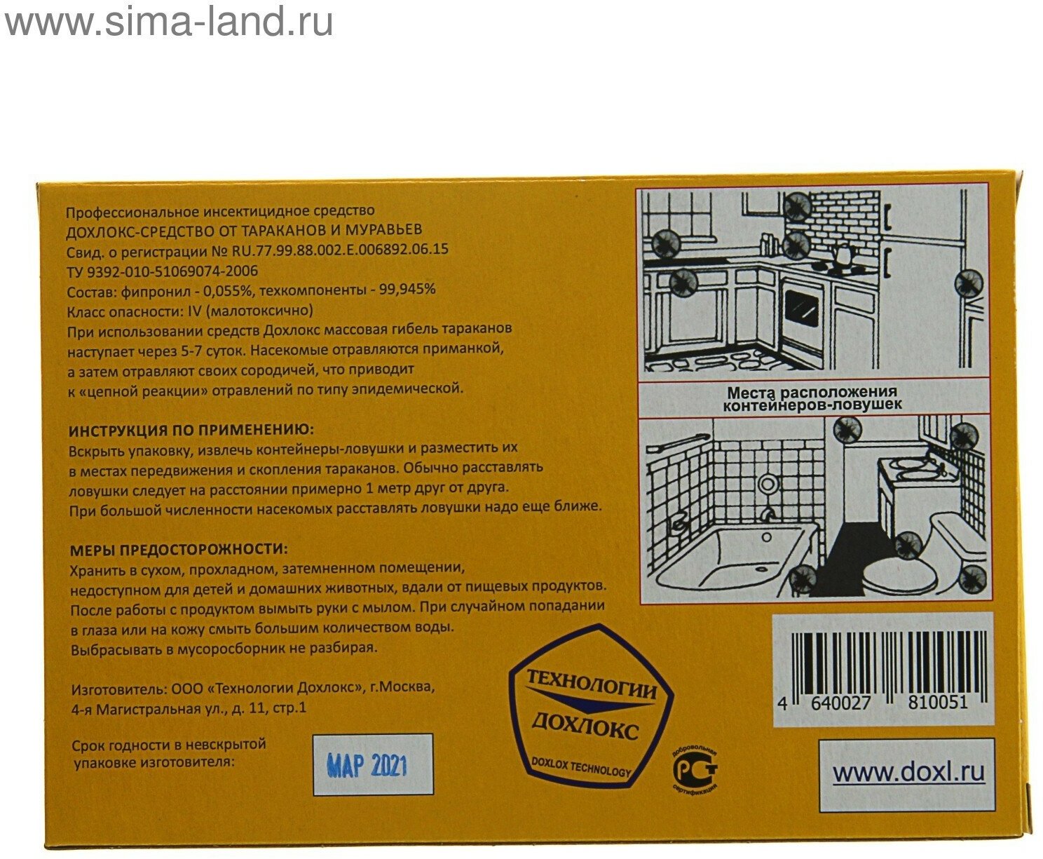 От тараканов и муравьев ловушка пластик (6шт/уп) Дохлокс Мгновенный Яд (проф.) кор (фипронил)