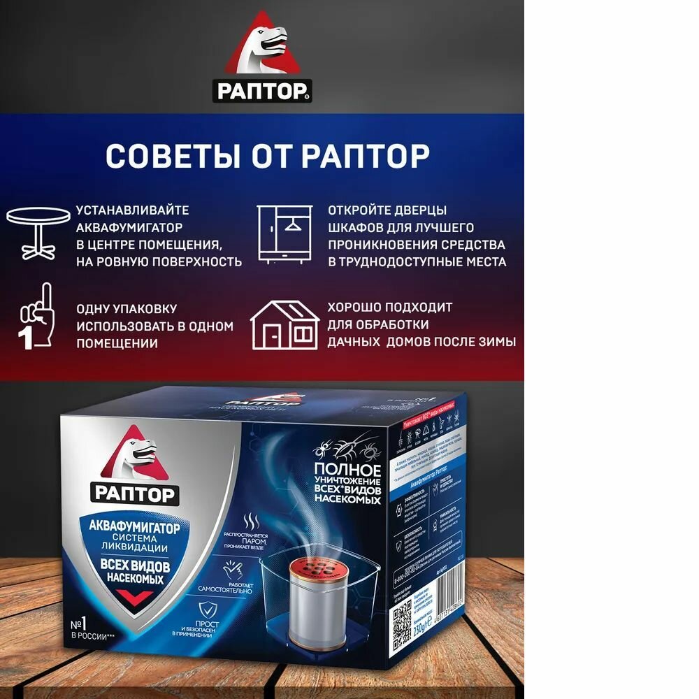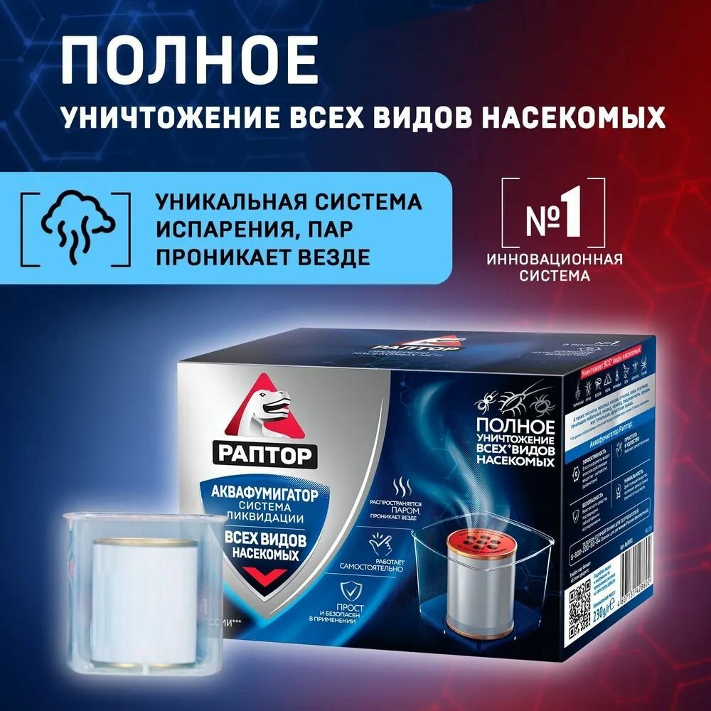 Аквафумигатор Раптор, средство от любых насекомых, 140 г / средство от комаров мух муравьев тараканов блох клопов мокриц