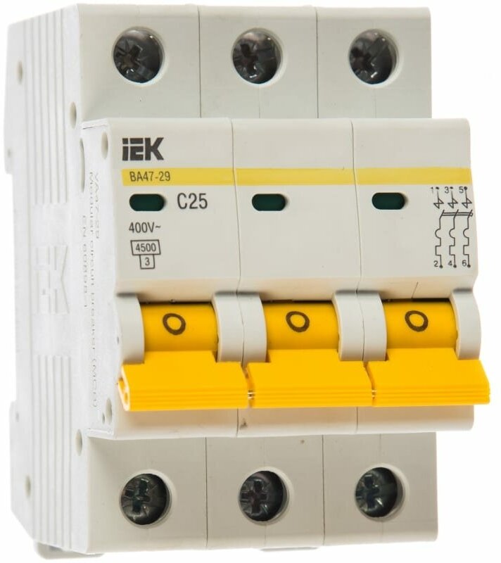 СохранитьВыключатель автоматический 25А 3П трехполюсный характеристика C 4,5кА ВА47-29 MVA20-3-025-C IEK интересное: