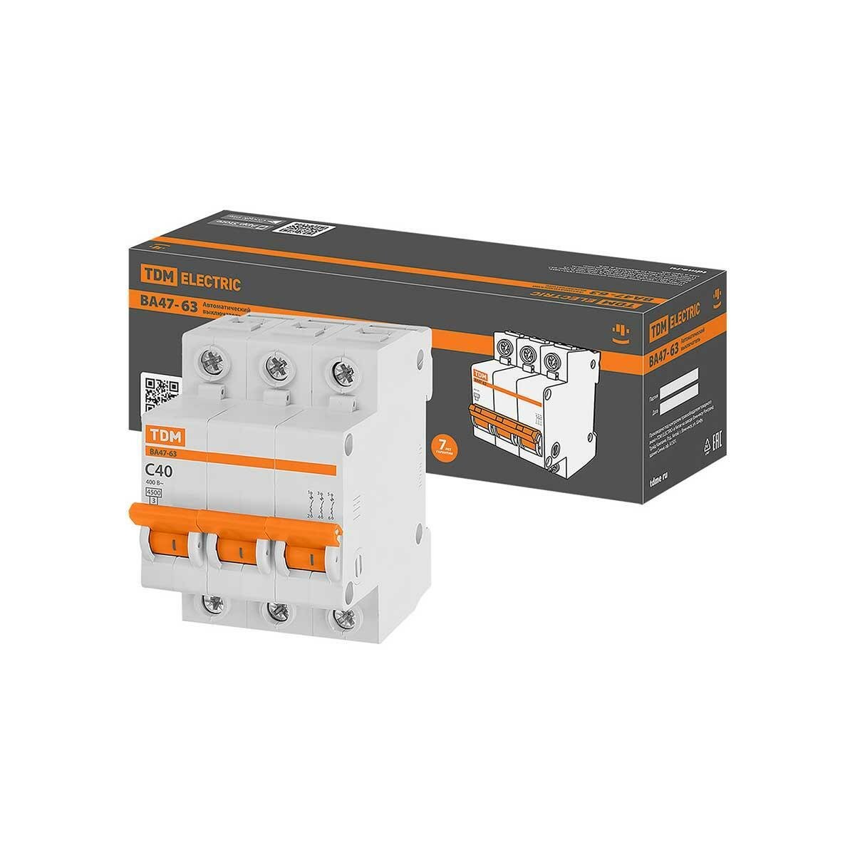 Автоматич. выключатель ВА47-63 3Р 40А 4,5кА х-ка С TDM (SQ0218-0023)