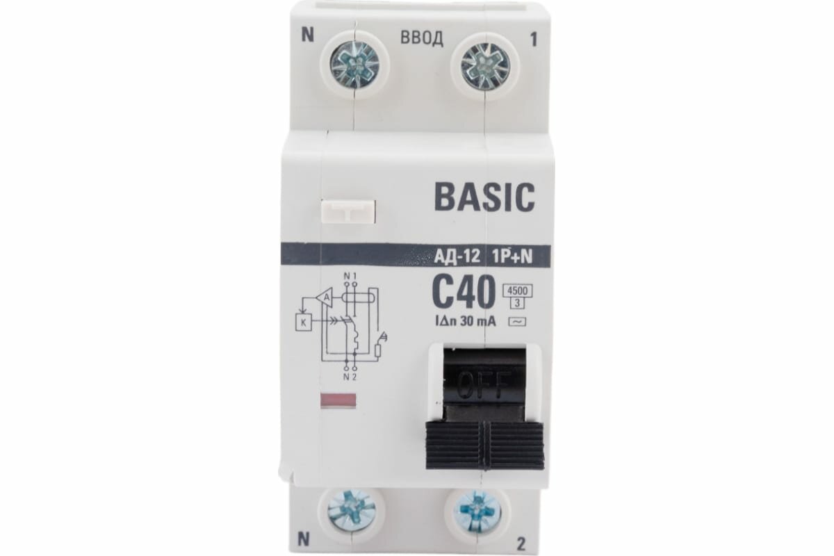 Автоматический выключатель дифференциального тока 1P-N 40А 30мА тип АС х-ка C эл. 4,5кА АД-12 Basic