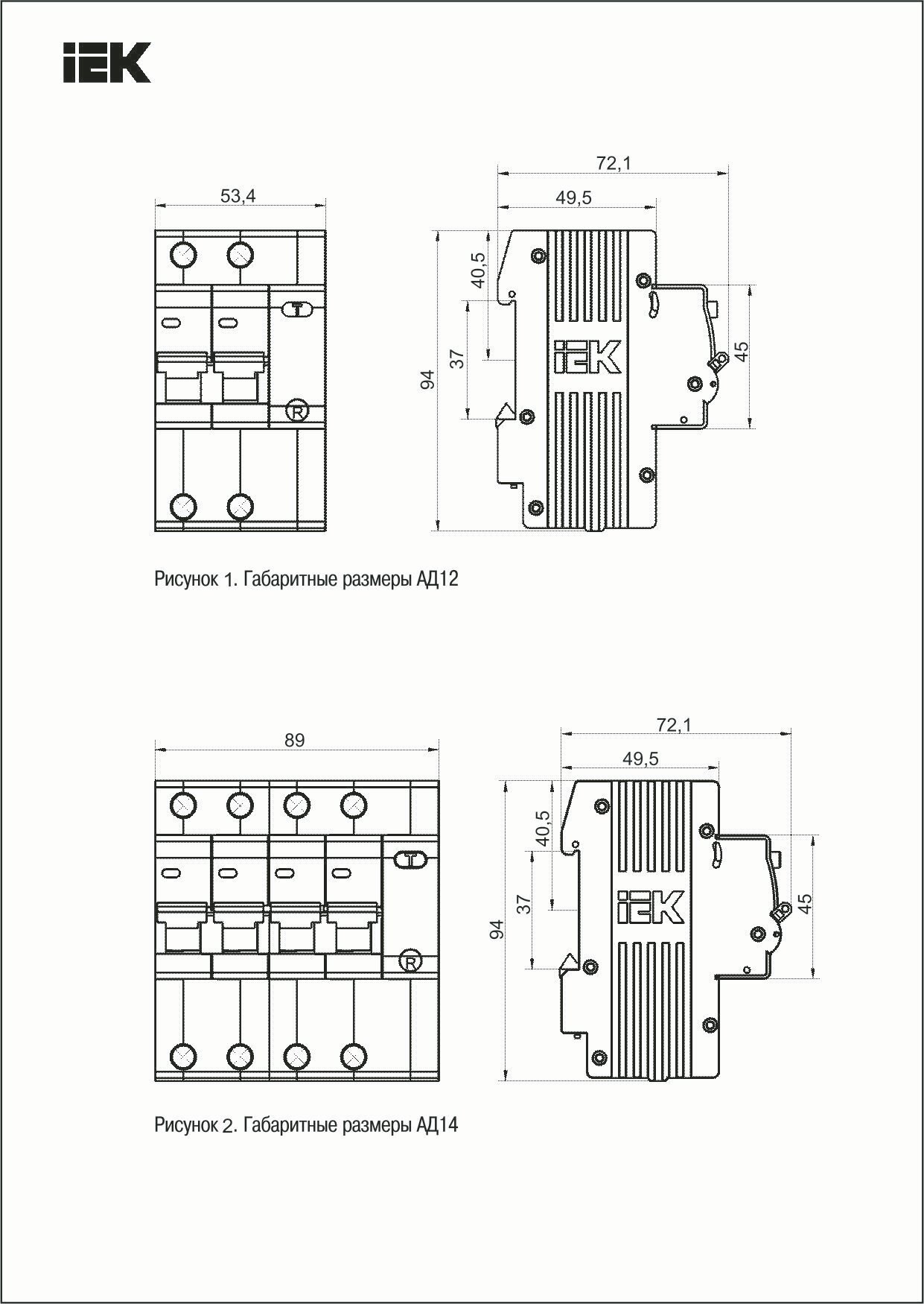Авт. выкл. диф. тока IEK АД12 2Р С50А 30mA (диф.автамат) (4м)