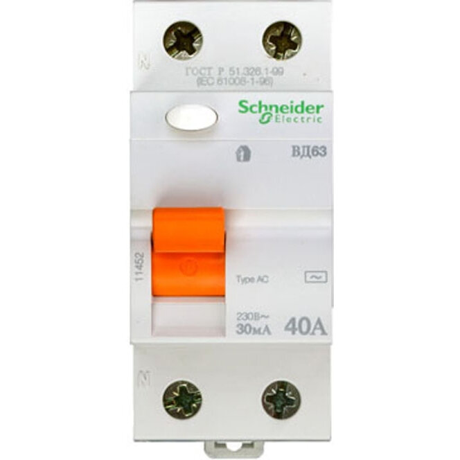 Ниже Вы можете прочитать отзывы на Выключатель дифференциального тока (УЗО) 2п 40А 30мА тип AC ВД63 Домовой SchE, SCHNEIDER ELECTRIC 11452 (1 шт.), ознакомится с подробными характеристиками, посмотреть интересные обзоры и фотографии на Выключатель дифференциального тока (УЗО) 2п 40А 30мА тип AC ВД63 Домовой SchE, SCHNEIDER ELECTRIC 11452 (1 шт.).