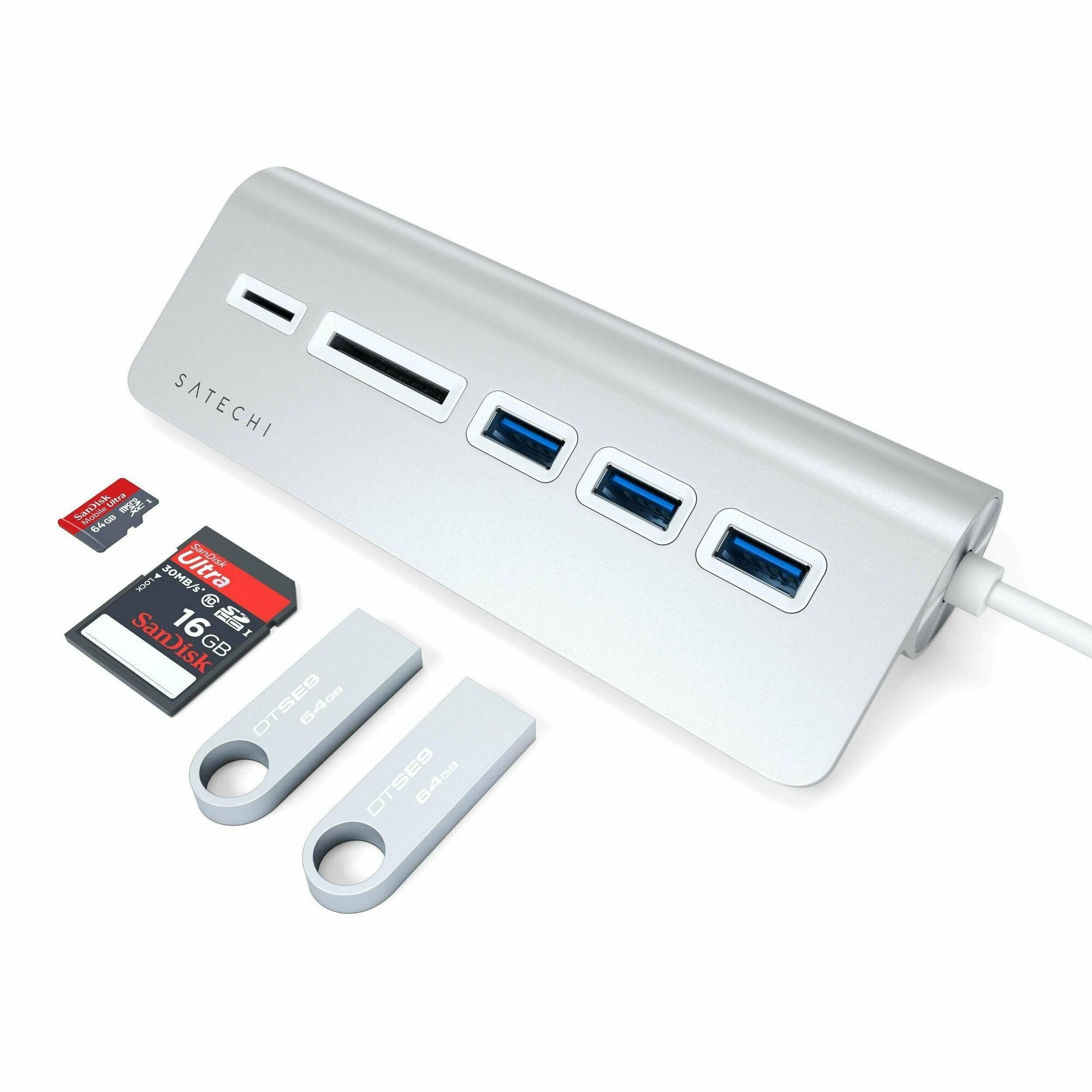 Хаб USB Satechi Aluminum Type-C - USB 3.0 Hub & Micro/SD Card Reader Silver ST-TCHCRS