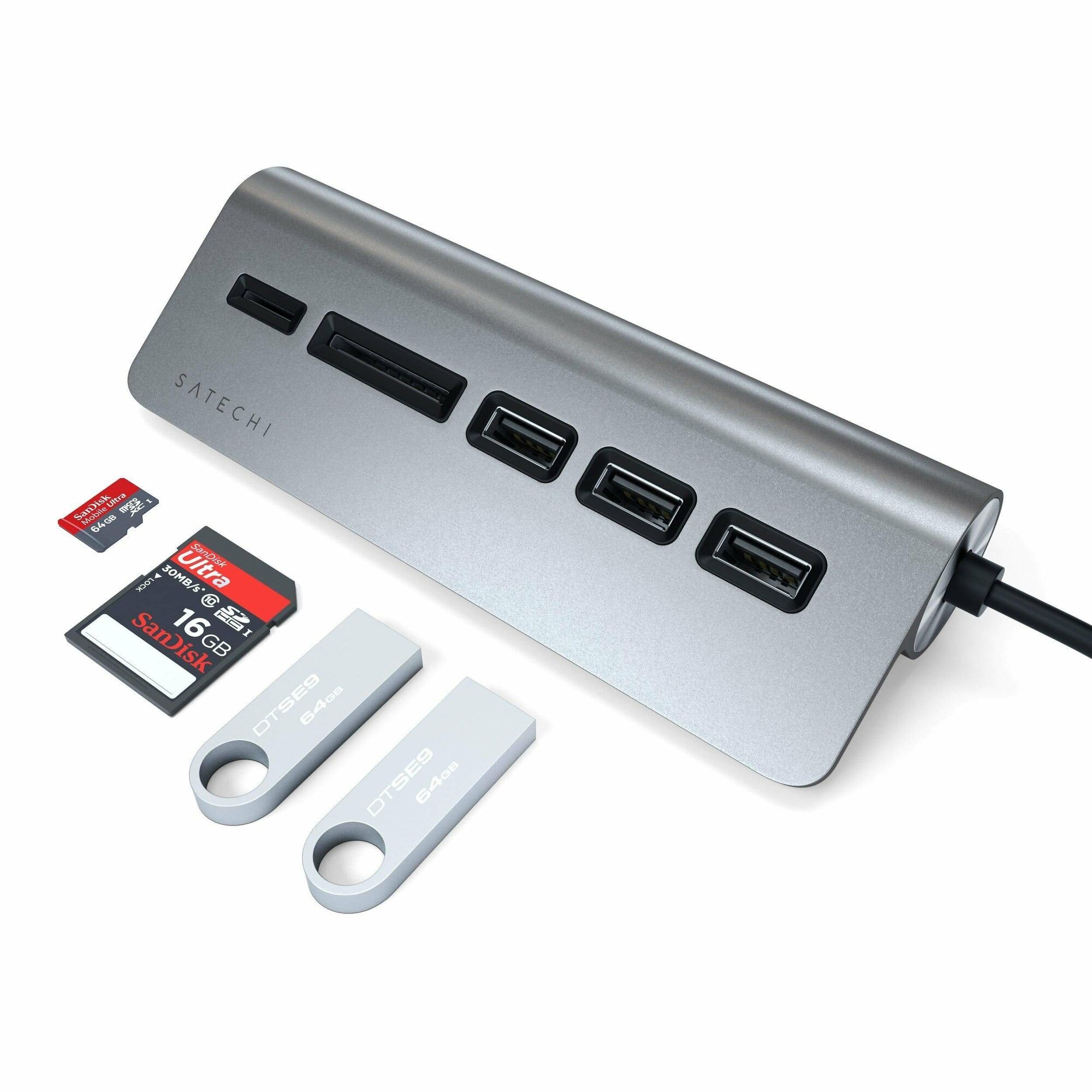 Хаб USB Satechi Aluminum Type-C - USB 3.0 Hub & Micro/SD Card Reader Grey ST-TCHCRM