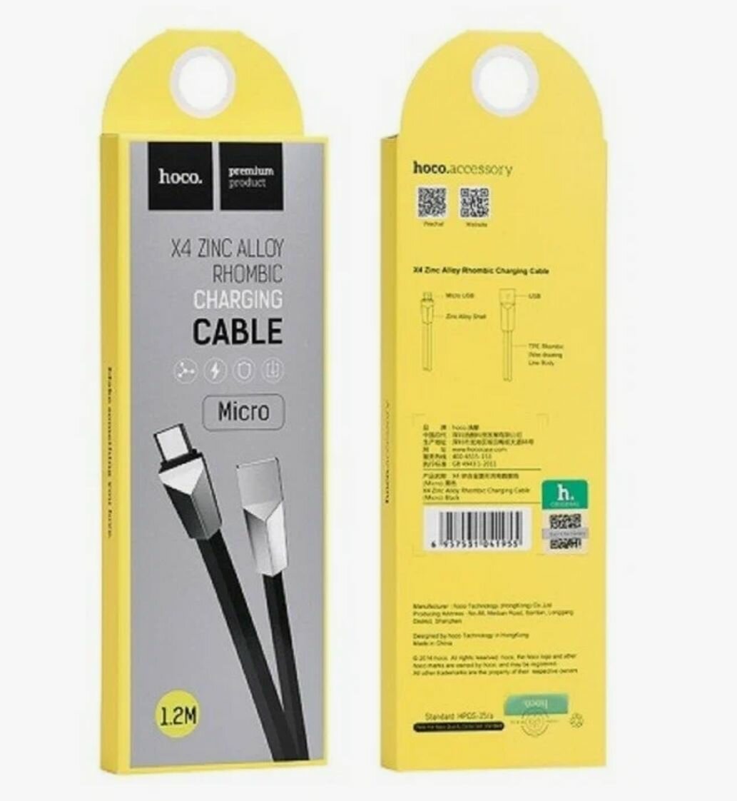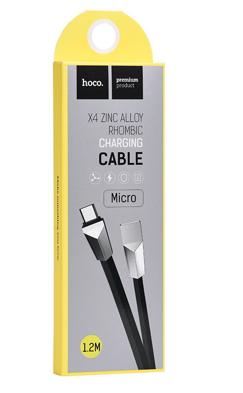 Кабель USB HOCO X4 Zinc Alloy rhombus, USB - MicroUSB, 2.4А, 1.2 м, черный, ромбовидный