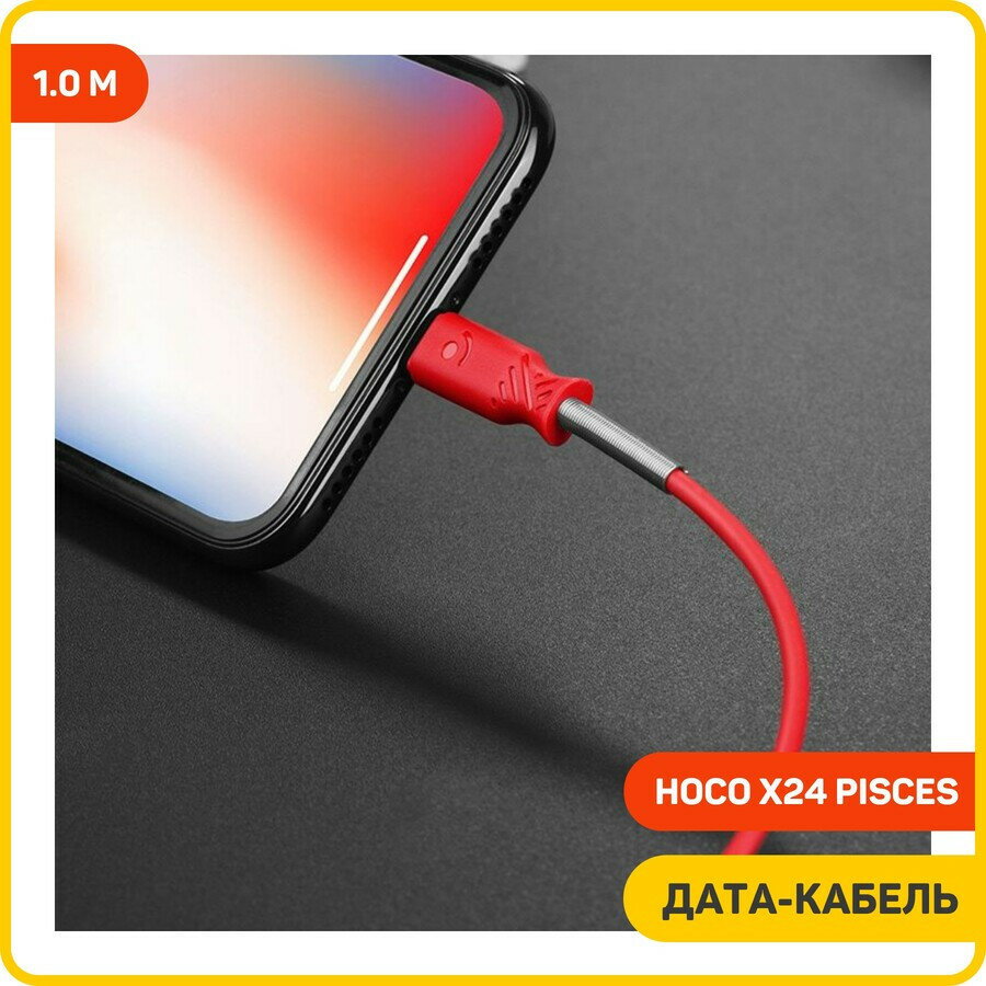 Дата-кабель Hoco X24 Pisces USB-Lightning (с пружиной) 1 м, красный