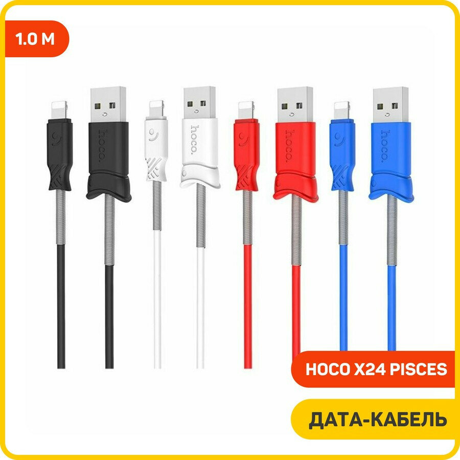 СохранитьДата-кабель Hoco X24 Pisces USB-Lightning (с пружиной) 1 м, синий интересное: