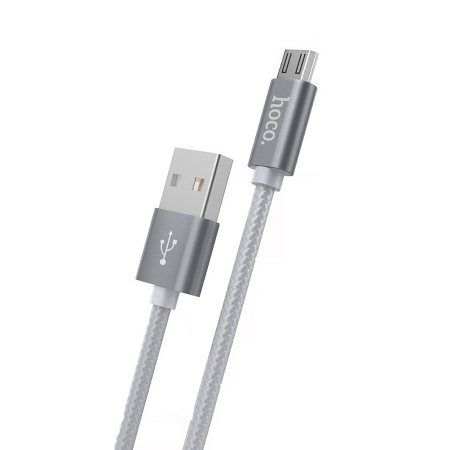 Кабель зарядки и синхронизации данных USB HOCO X2 knitted для Micro USB, 2.4 A, длина 1.0 м, серый, 6957531032205
