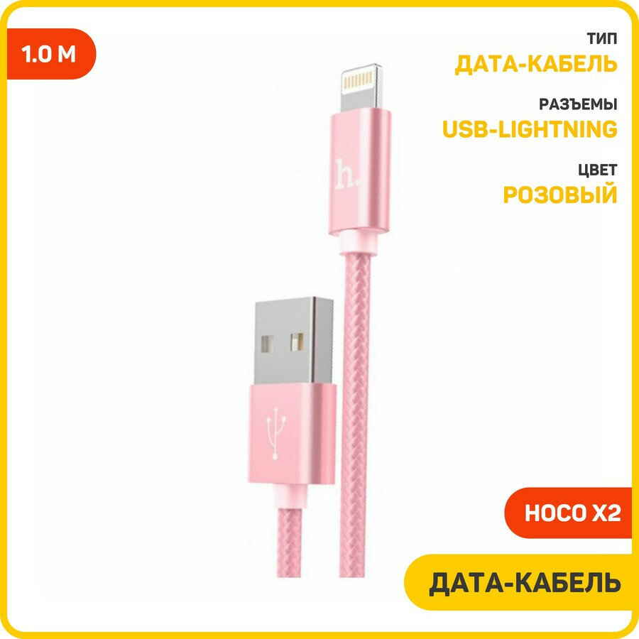 Купить Дата-кабель Hoco X2 USB-Lightning, 1 м, розовый