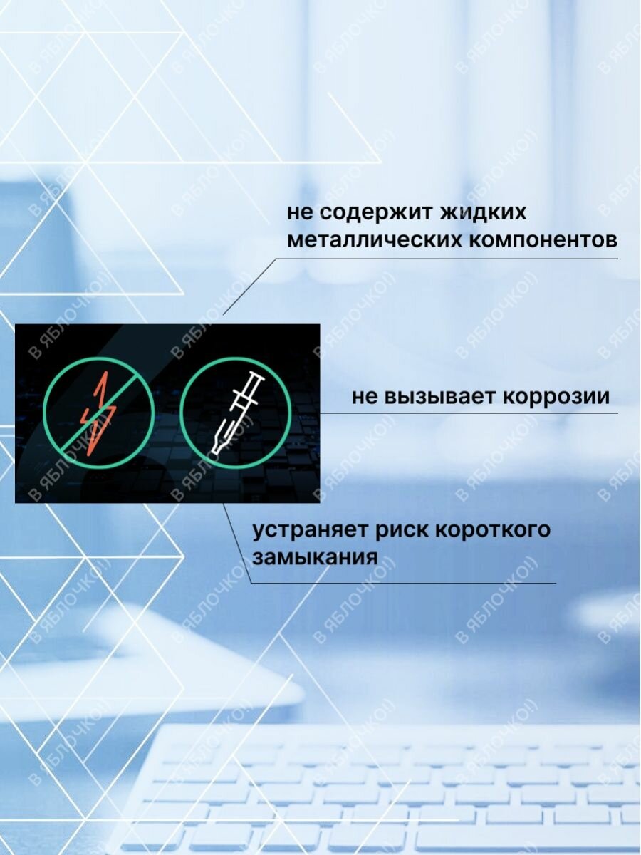 - не сохнет - не проводит ток - приемлемая цена - легко размазывается - достаточно удобный шприц - можно выдавить ровно столько сколько нужно |