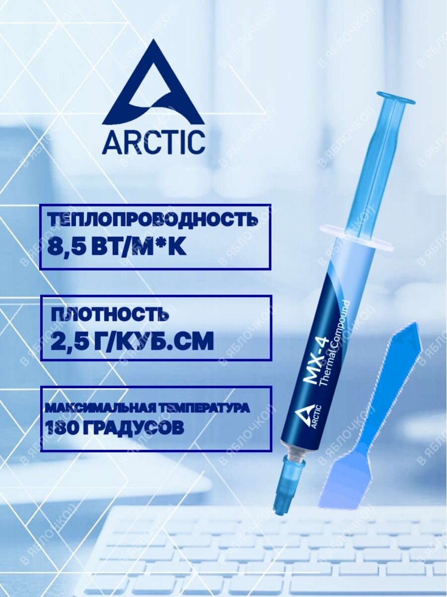 Термопаста Arctic Cooling MX-4 в шприце для видеокарт, чипов, процессоров, 8.5 Вт/мК, 4 гр