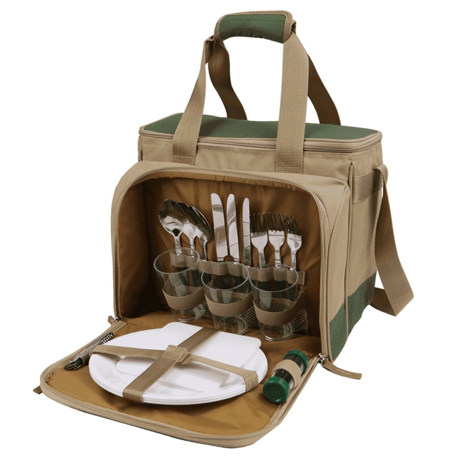 Термосумка "Арктика", с набором посуды на 3 человека, 13.5 л, 31 х 34 х 24 см, зелёная