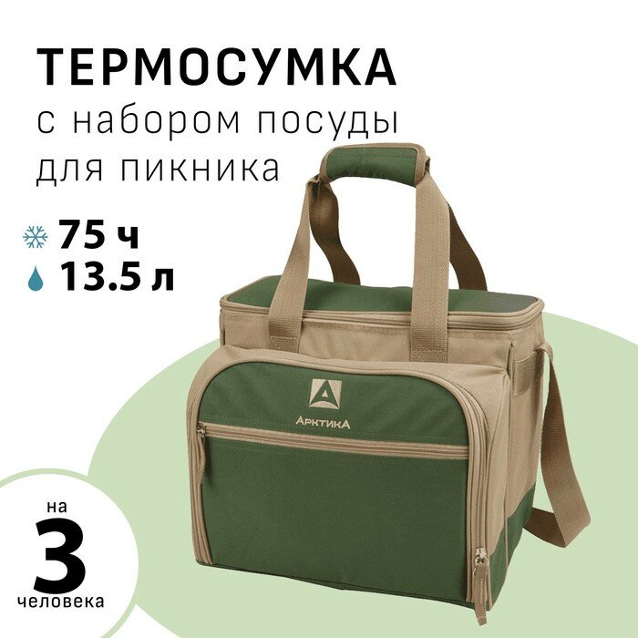 Термосумка "Арктика", с набором посуды на 3 человека, 13.5 л, 31 х 34 х 24 см, зелёная Арктика 95274