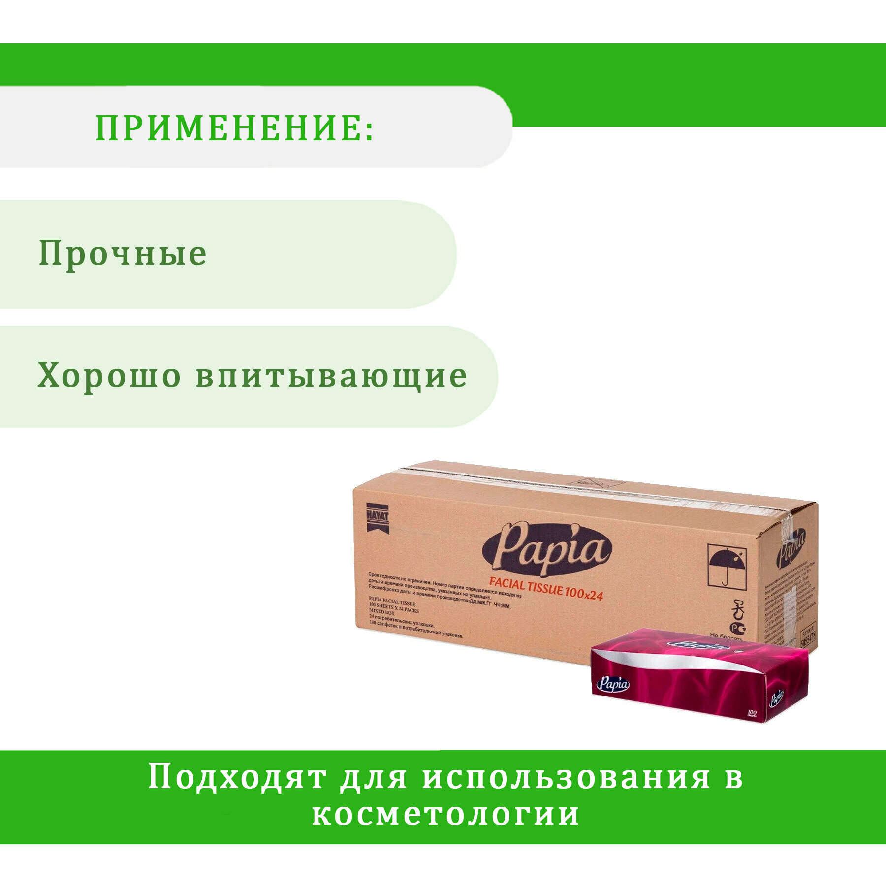 Купить PAPIA Салфетки в коробках 2 слоя х 100 штук с голограммой (Экспорт)