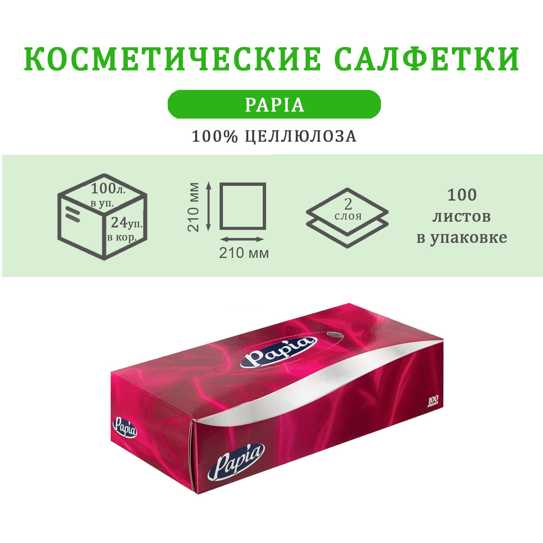 Papia Салфетки косметические 2 слоя, 100 шт/уп