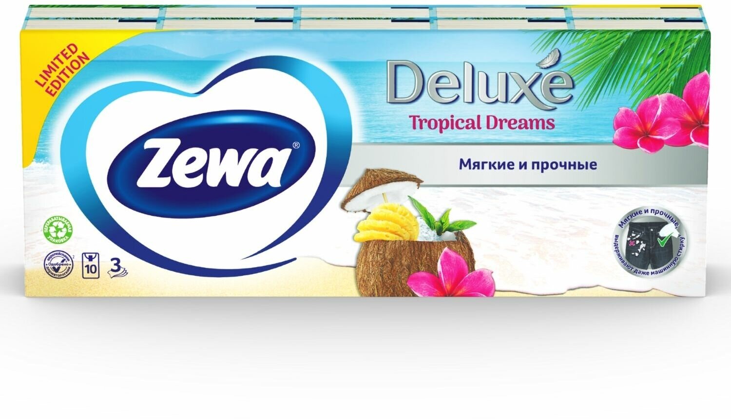 ZEWA Платки носовые бумажные Original Deluxe 3-х слойные, 10 шт.