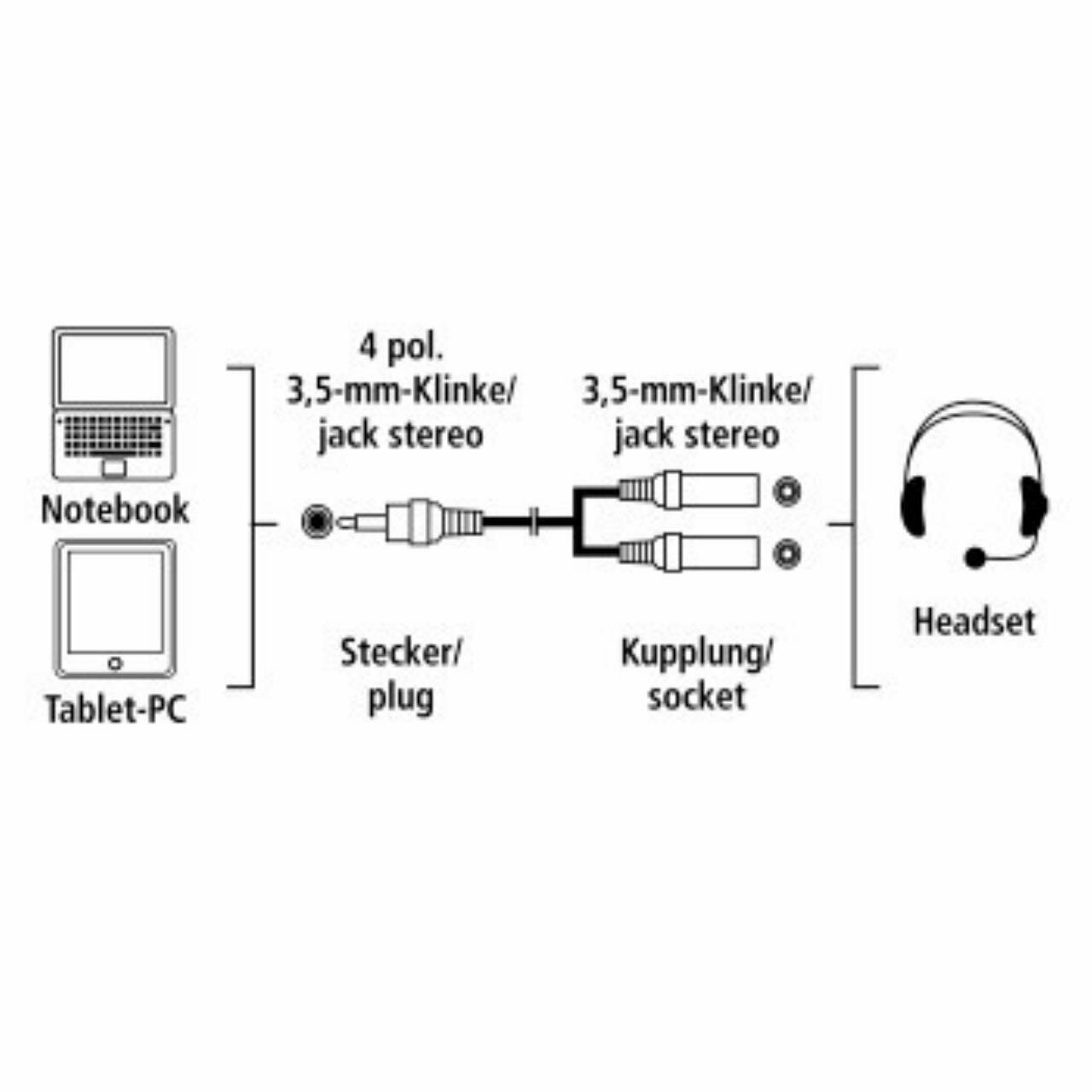 Переходник HAMA H-54573 2x3.5 мм Jack (f) - 4 pin 3.5 мм Jack (m) черный