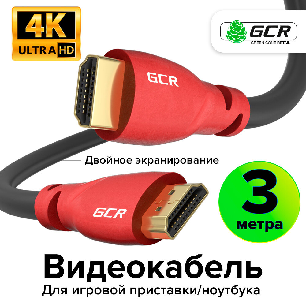 Купить Кабель HDMI 2.0 4K UltraHD HDR 3D 18 Гбит/с для PS4 PS5 Smart TV двойное экранирование (GCR-HM301) черный;красный 3.0м