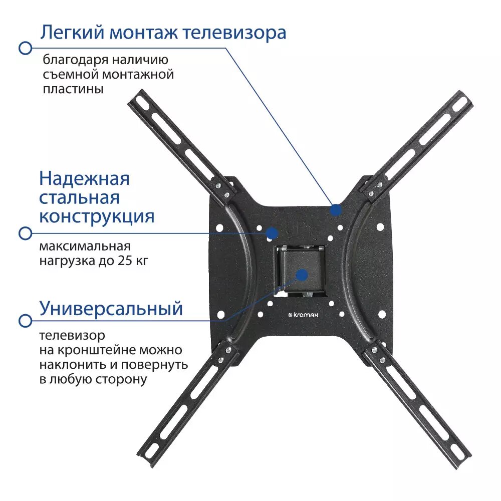 Кронштейн Kromax OPTIMA-402 черный 15-55" max 25кг VESA 400x400 поворот и наклон