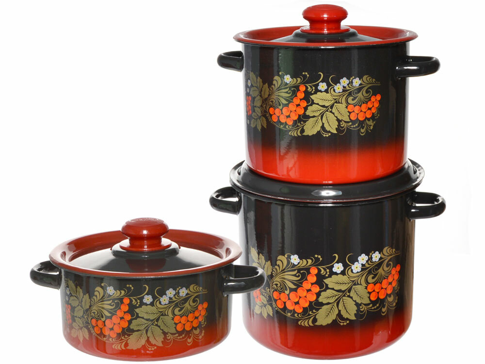 Набор эмал.посуды 3пр 16 красно-черн.Рябинка (к.цил.2л,3,5л,5,5л) N16L05