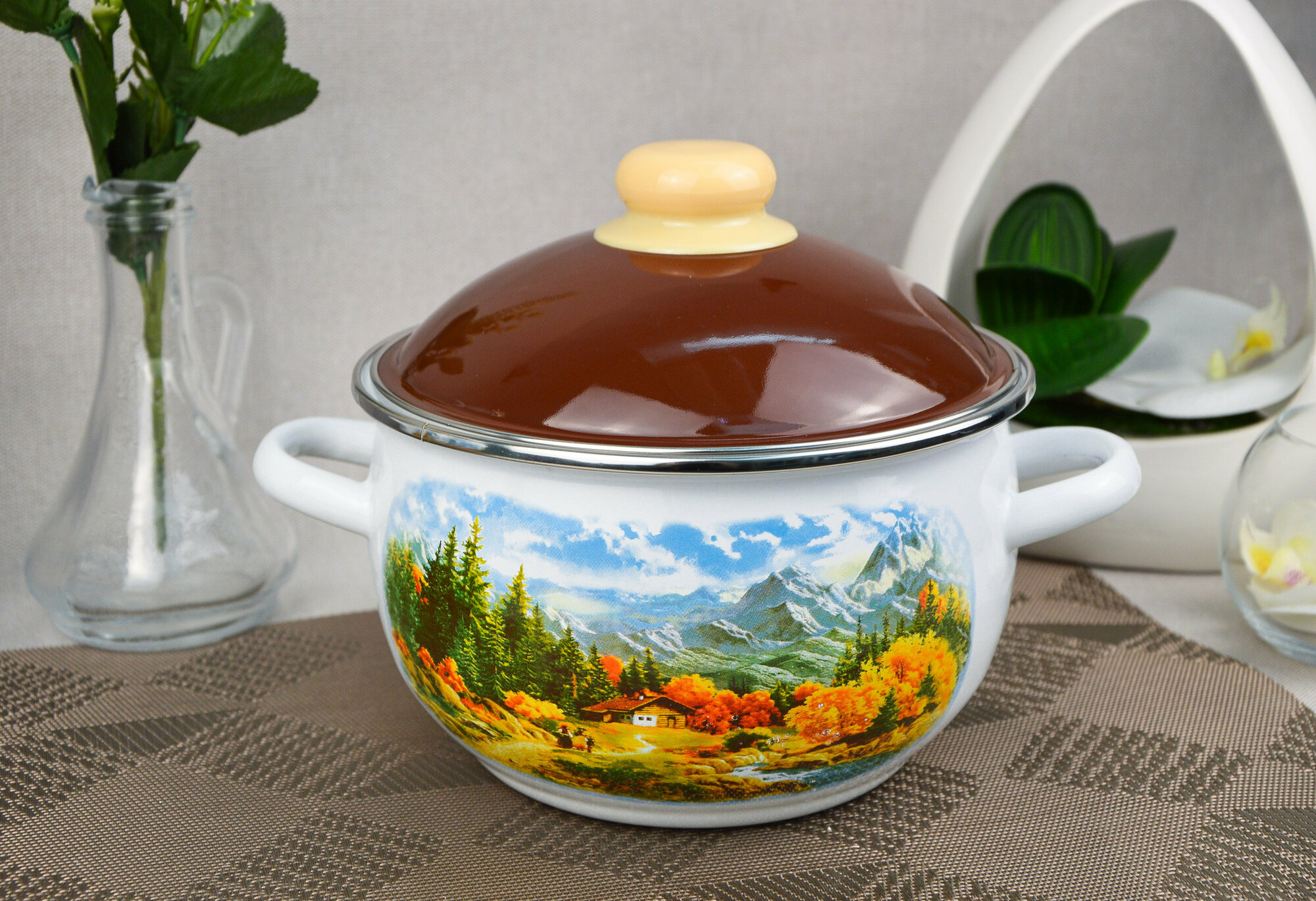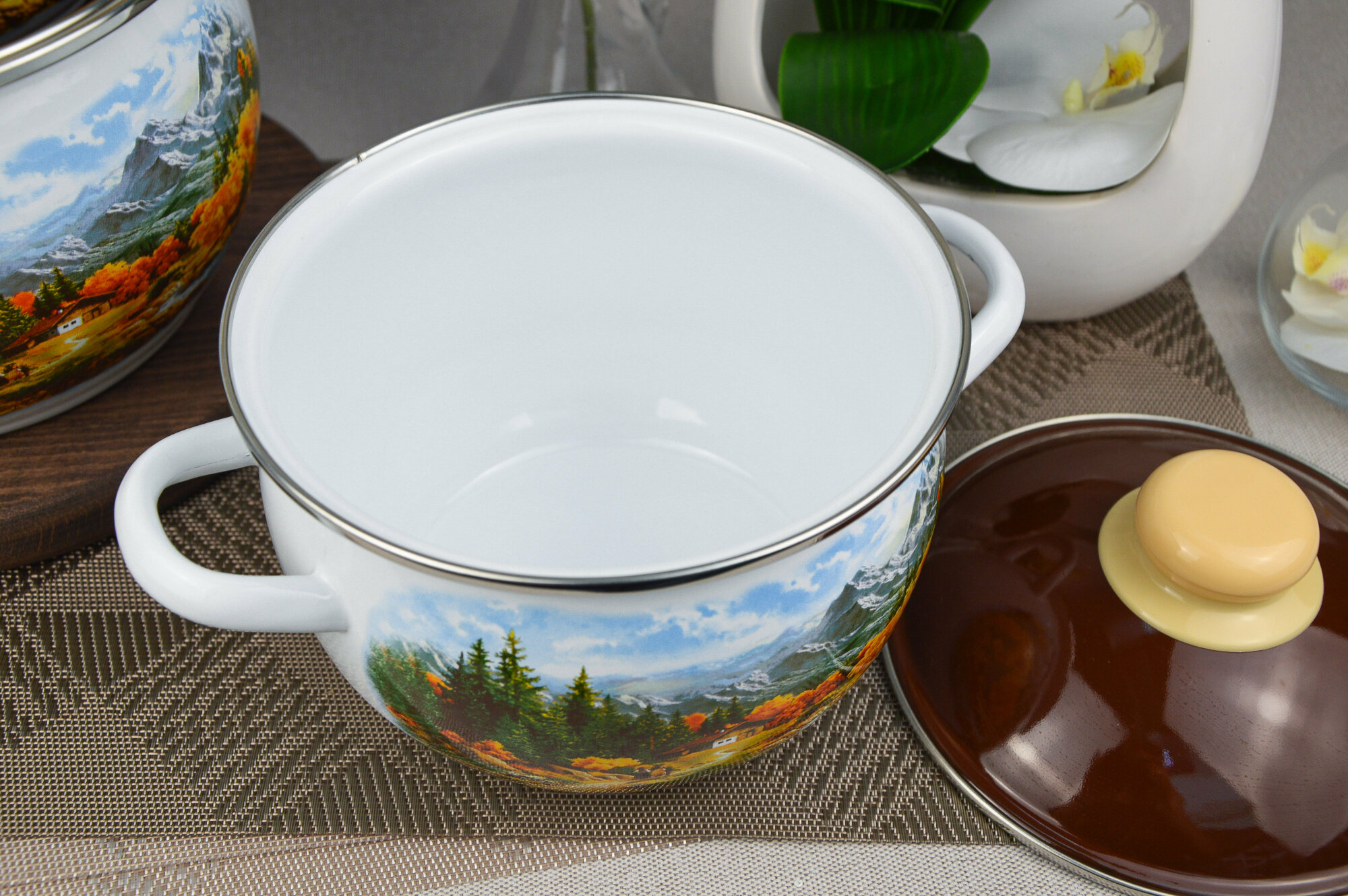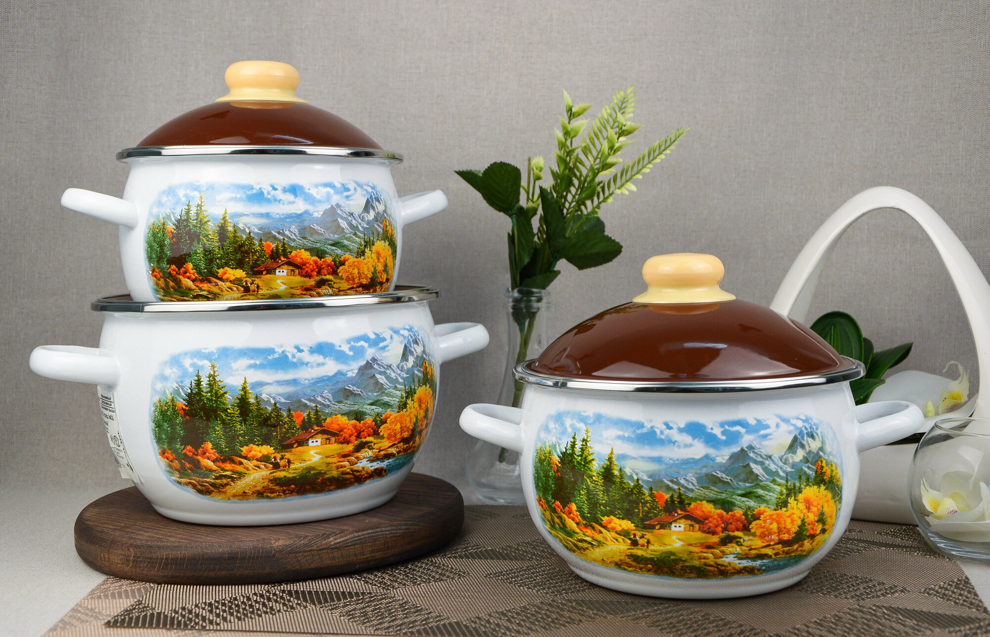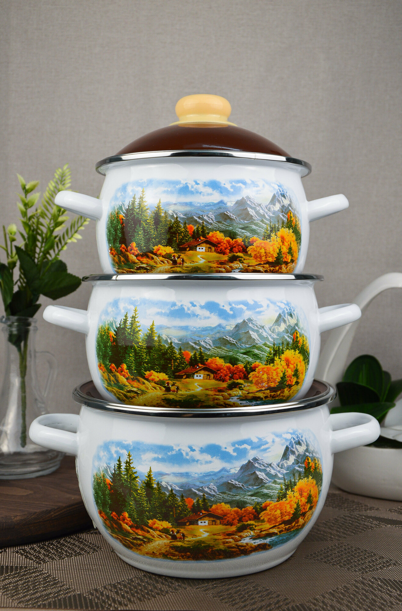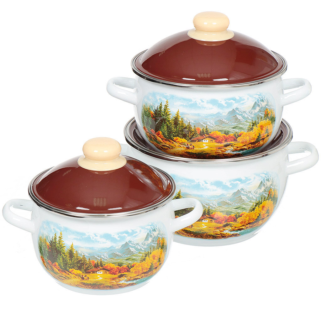 Набор эмалированной посуды 3 предмета "Альпы" / набор кастрюль / набор кастрюль эмалированных