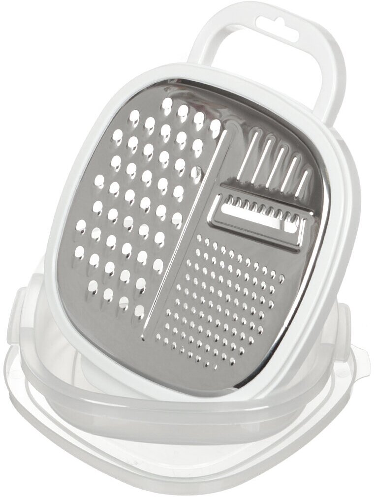 Терка с контейнером и крышкой 24,5*19*6см (белый) (нержавейка),пластик