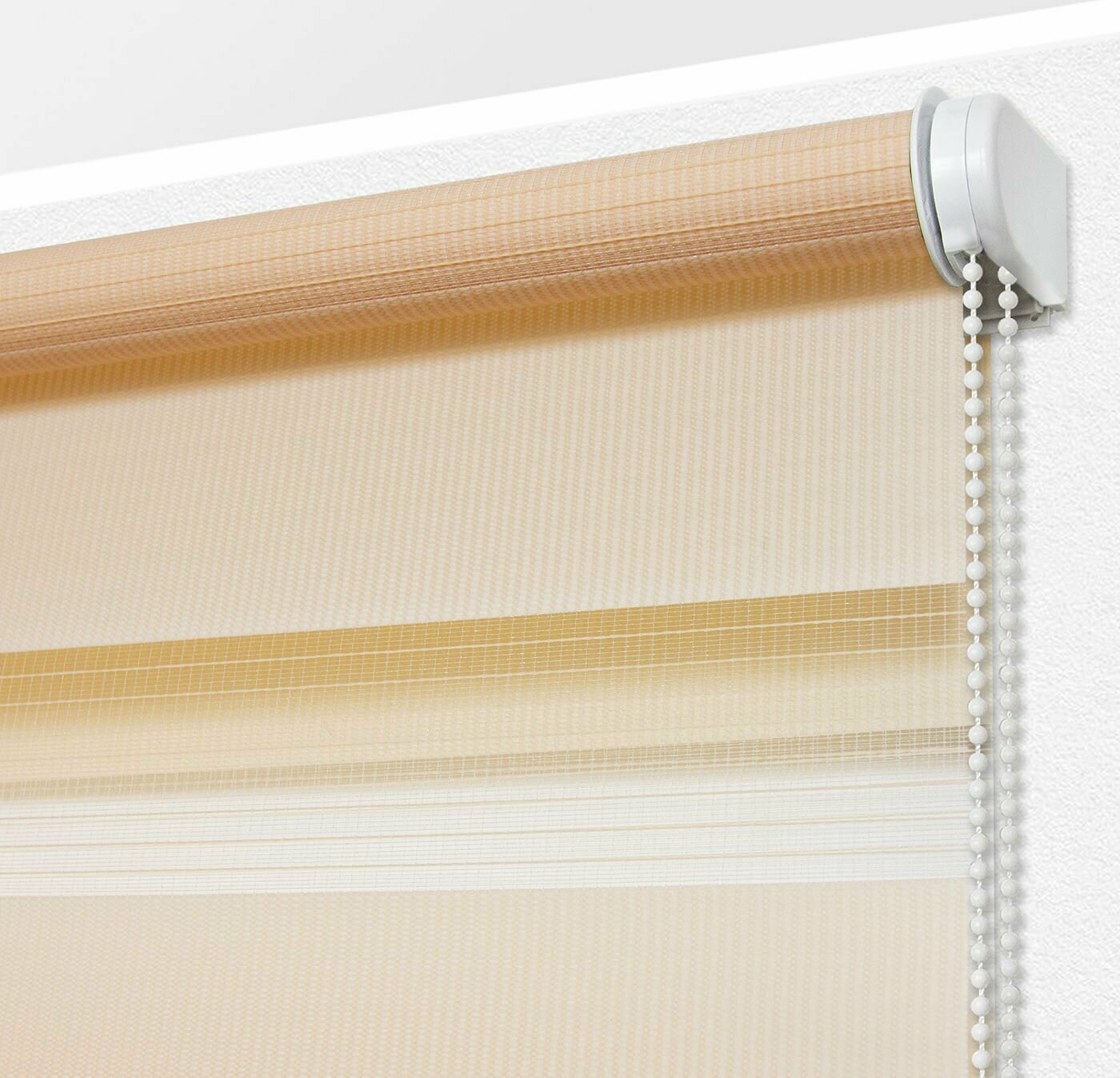 Рулонная штора УЮТ день ночь 090х160 см Канзас светло-бежевый, рулонные жалюзи, рольштора полиэстер, затемнение 60%