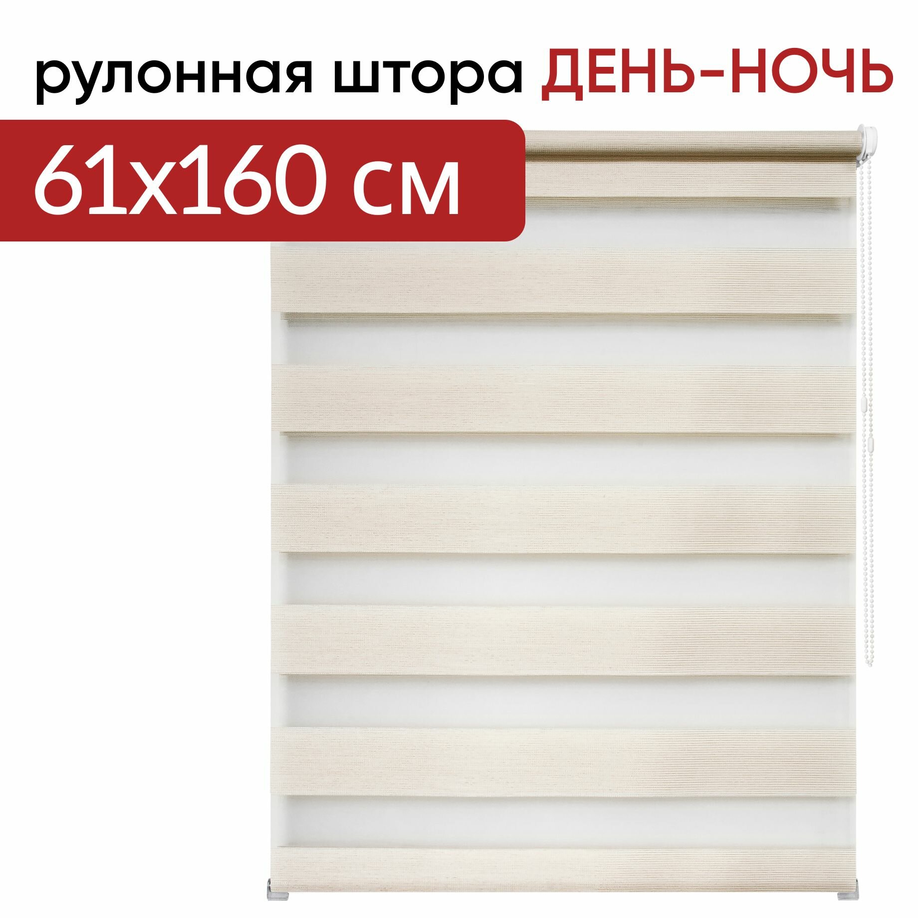 Рулонная штора УЮТ День-Ночь 090х160 см Канзас натуральный, рулонные жалюзи, рольштора полиэстер, затемнение 60%
