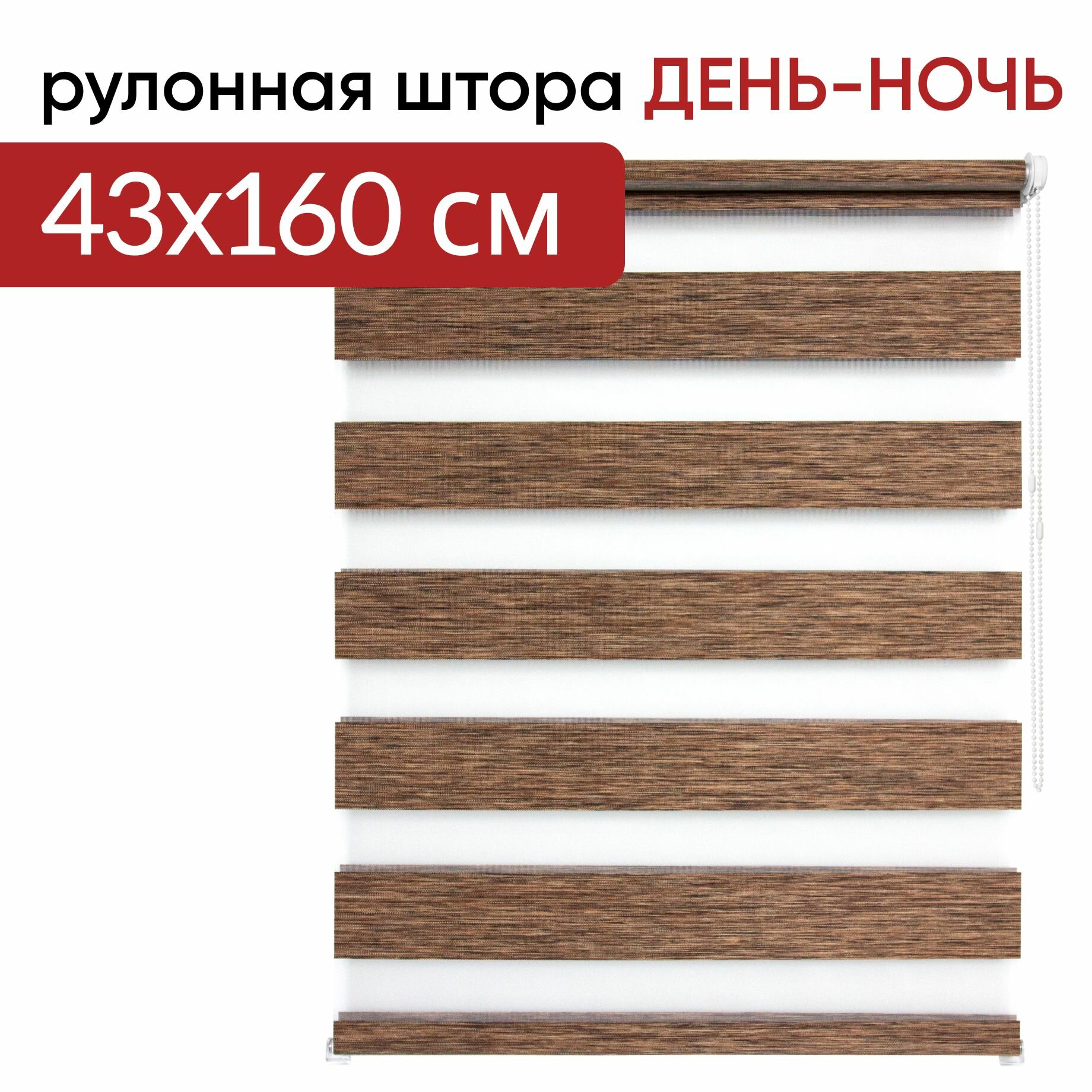 Рулонная штора УЮТ День-Ночь 043х160 см Канзас темно-каштановый, рольштора полиэстер, затемнение 60%