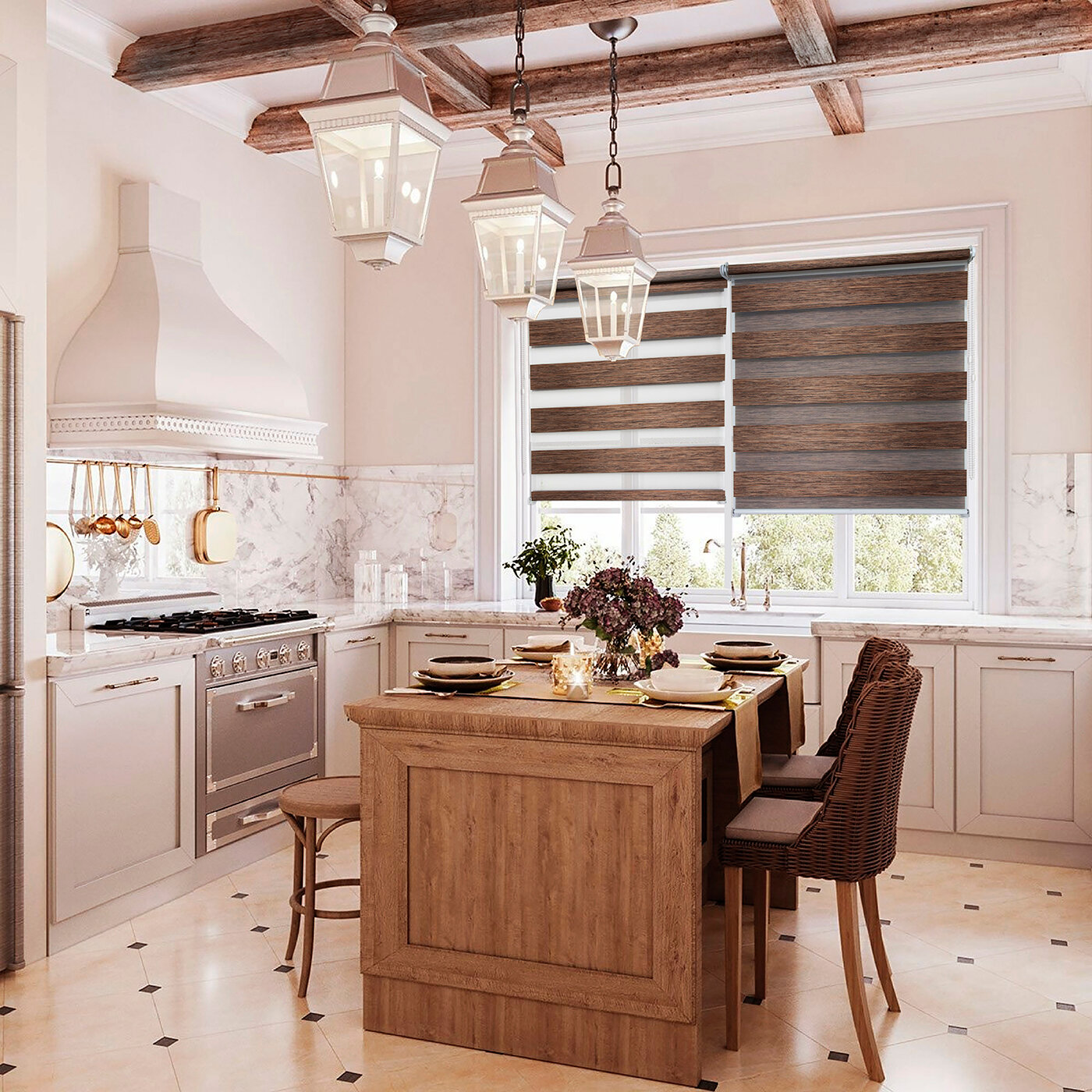 Рулонная штора УЮТ День-Ночь 160х160 см Канзас каштановый, рольштора полиэстер, затемнение 60%