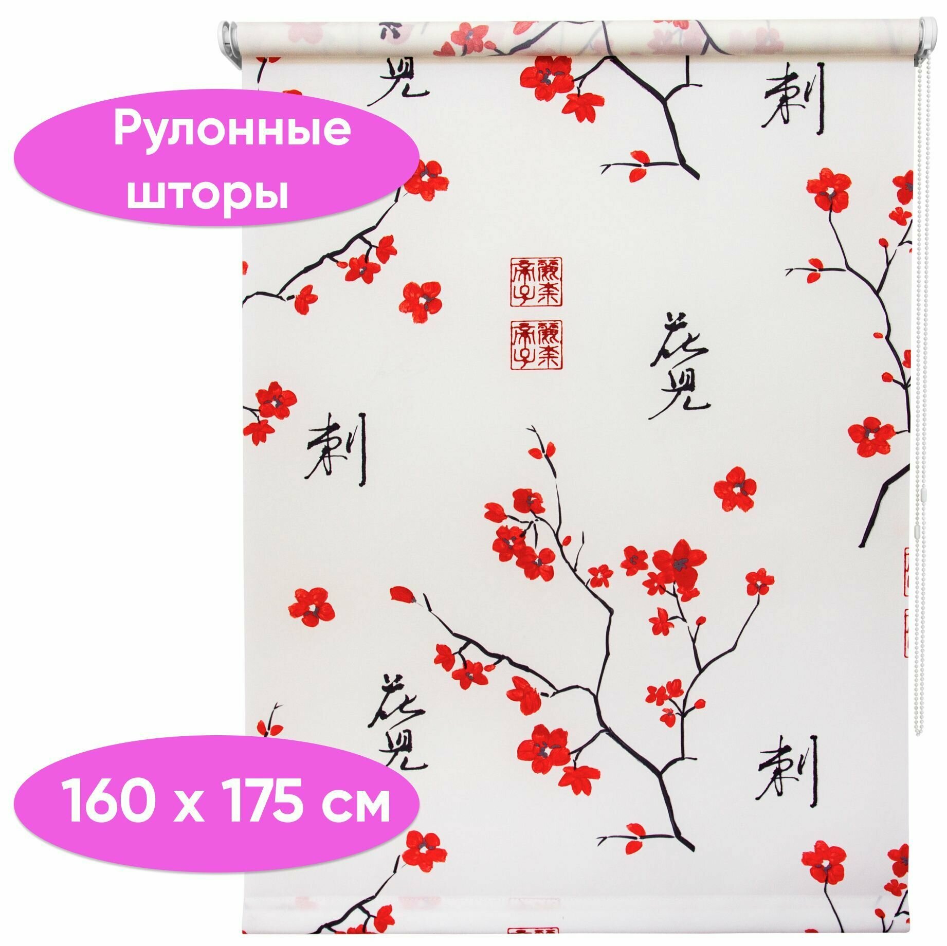 Рулонные шторы с рисунком цветов 160 x 175 см Жалюзи на окна с фотопечатью принта Сакура белый