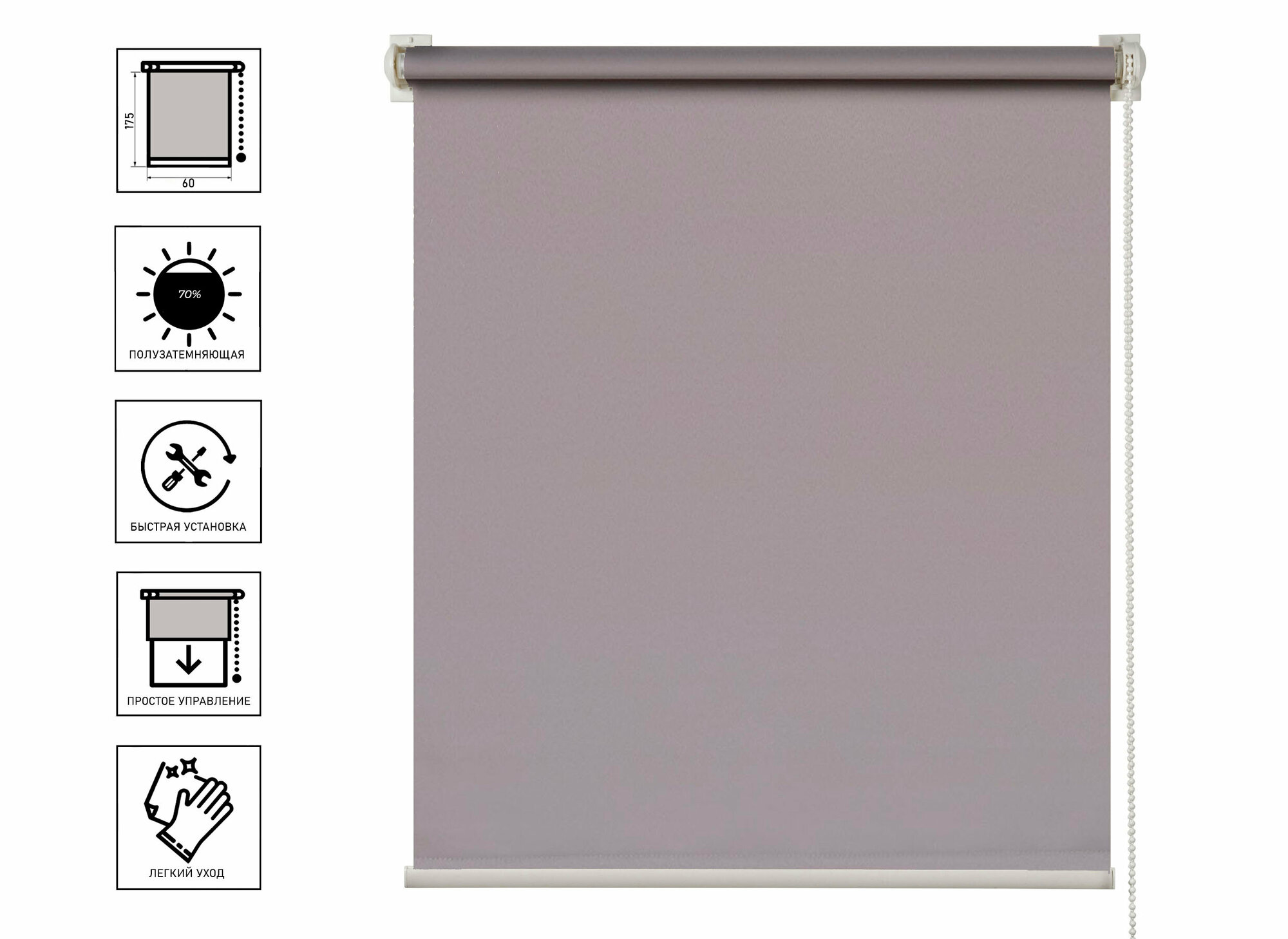Рулонная штора УЮТ 060х175 см Плайн серый, рулонные жалюзи, рольштора полиэстер, затемнение 70%