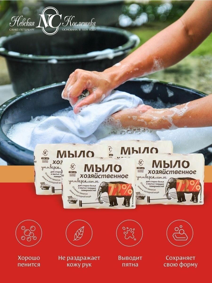 Хозяйственное мыло Невская Косметика универсальное 72%, 0.4 кг, 4 шт. в уп.