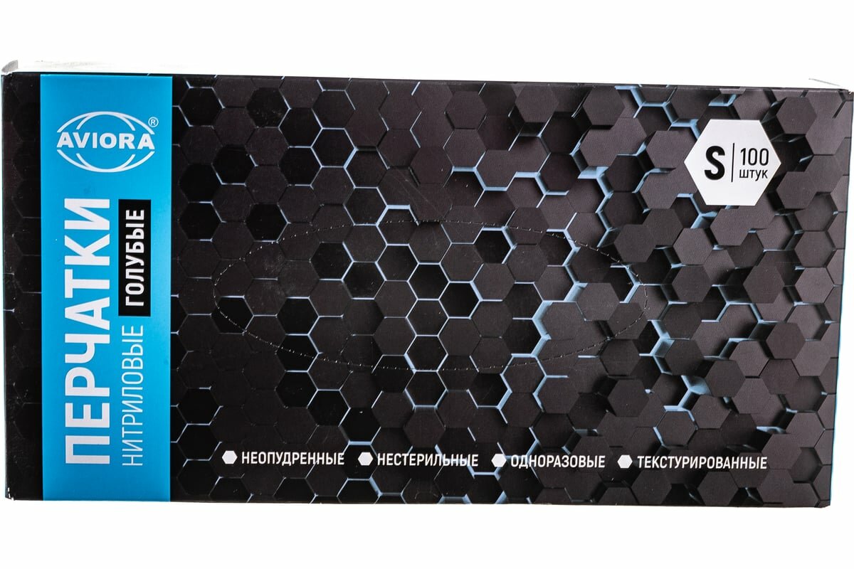 Aviora Перчатки нитриловые, неопудренные, одноразовые, голубые, размер S, 50 пар