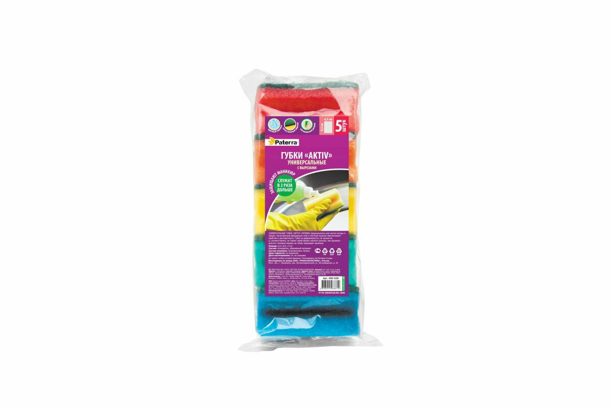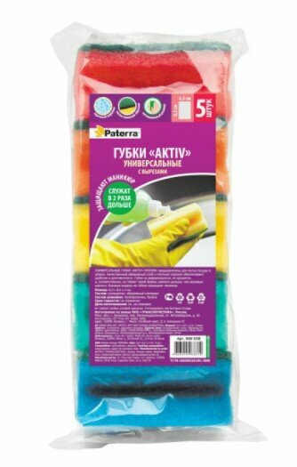 Губки кухонные AKTIV с вырезами 65*85*40мм "Paterra" 5 шт